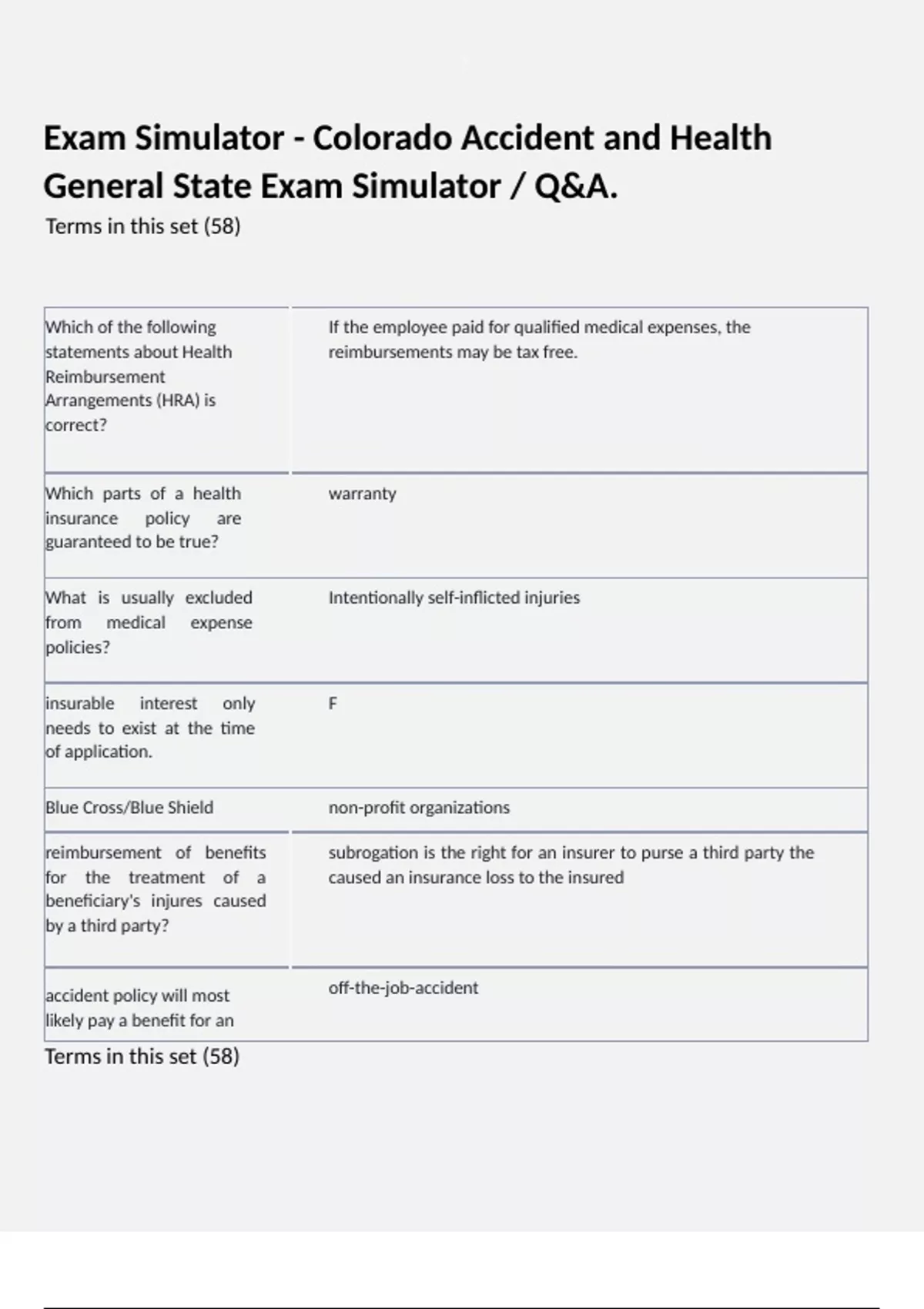 Exam Simulator - Colorado Accident and Health