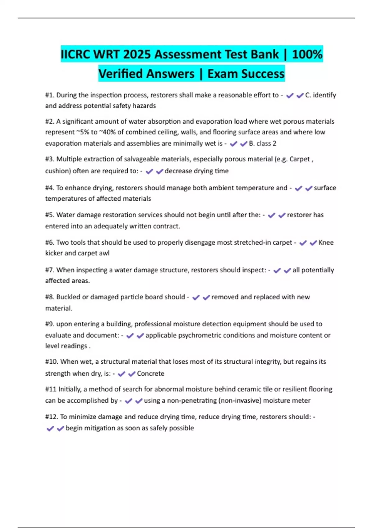 IICRC WRT 2025 Assessment Test Bank | 100% Verified Answers | Exam Success