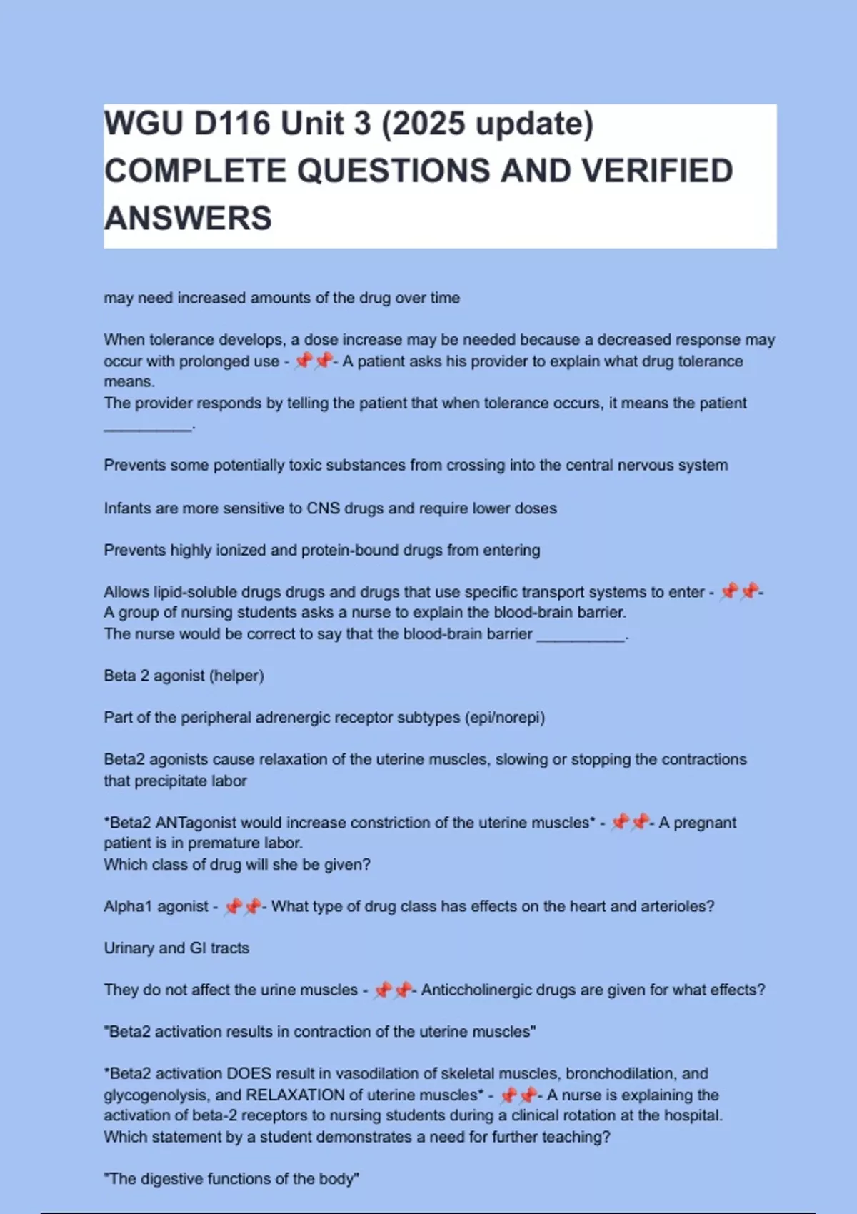 WGU D116 Unit 3 (2025 update) COMPLETE QUESTIONS AND VERIFIED ANSWERS.