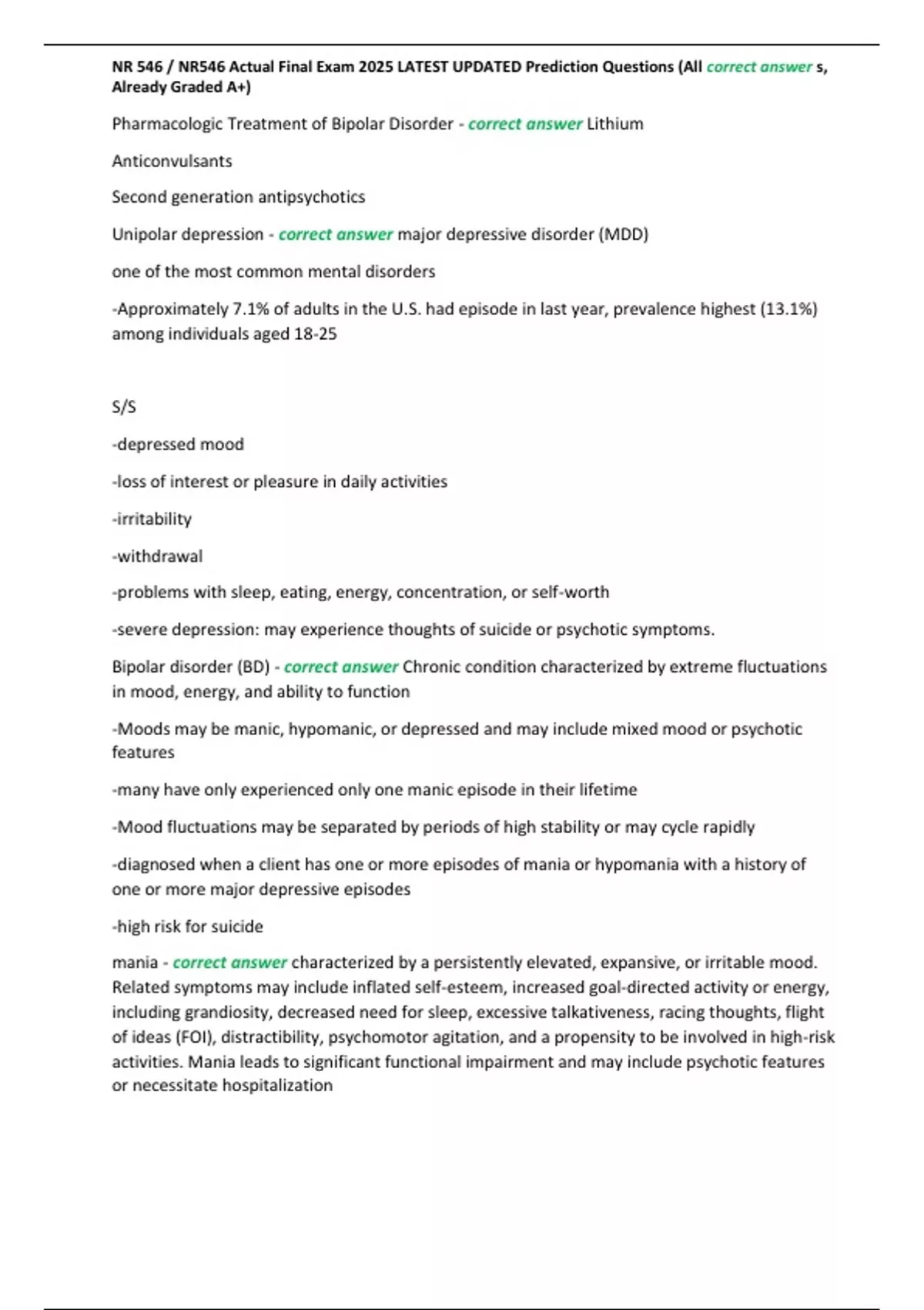 NR 546 / NR546 Actual Final Exam 2025 LATEST UPDATED Prediction Questions (All correct answer s, Already Graded A+)