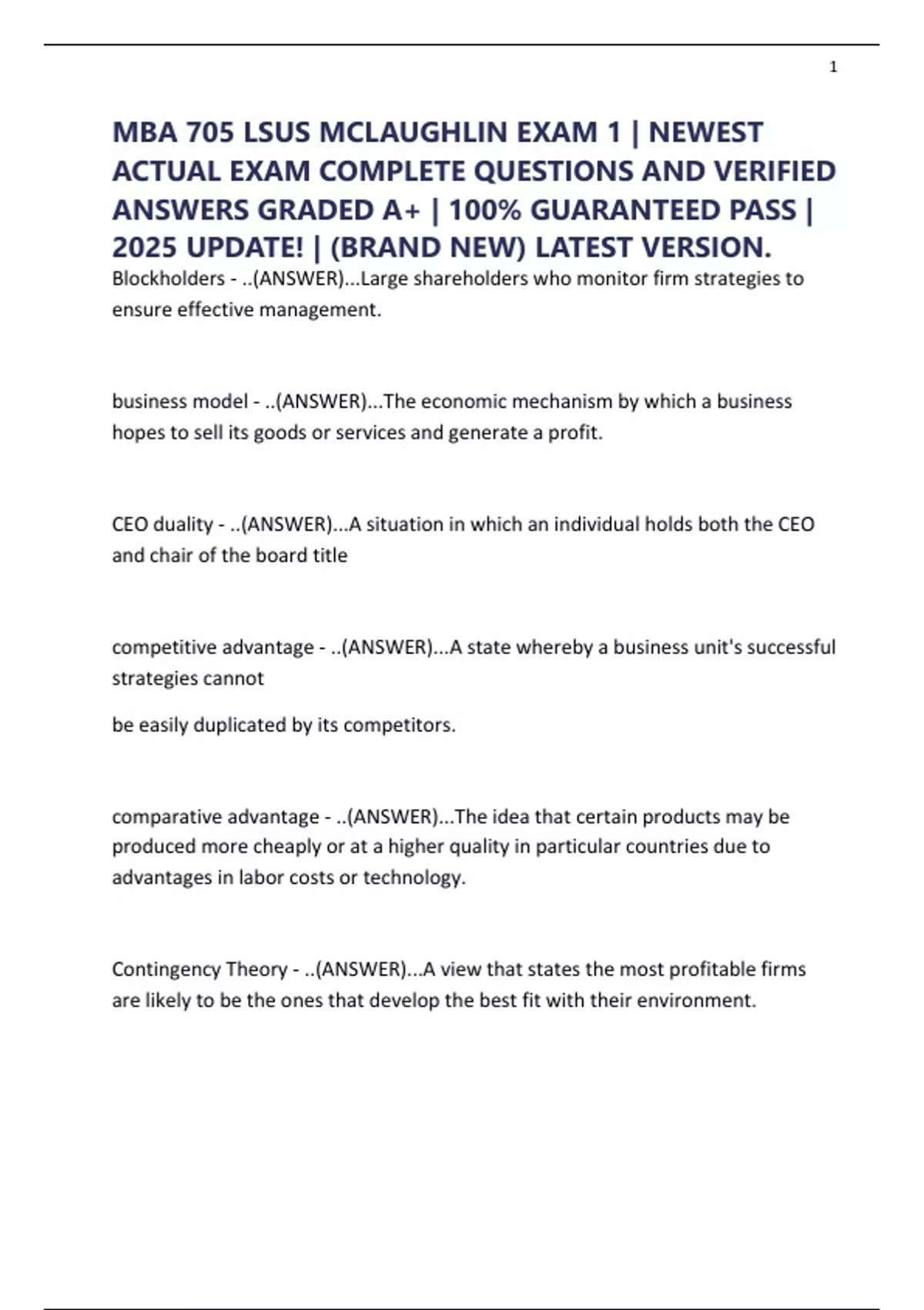 MBA 705 LSUS MCLAUGHLIN EXAM 1 | NEWEST