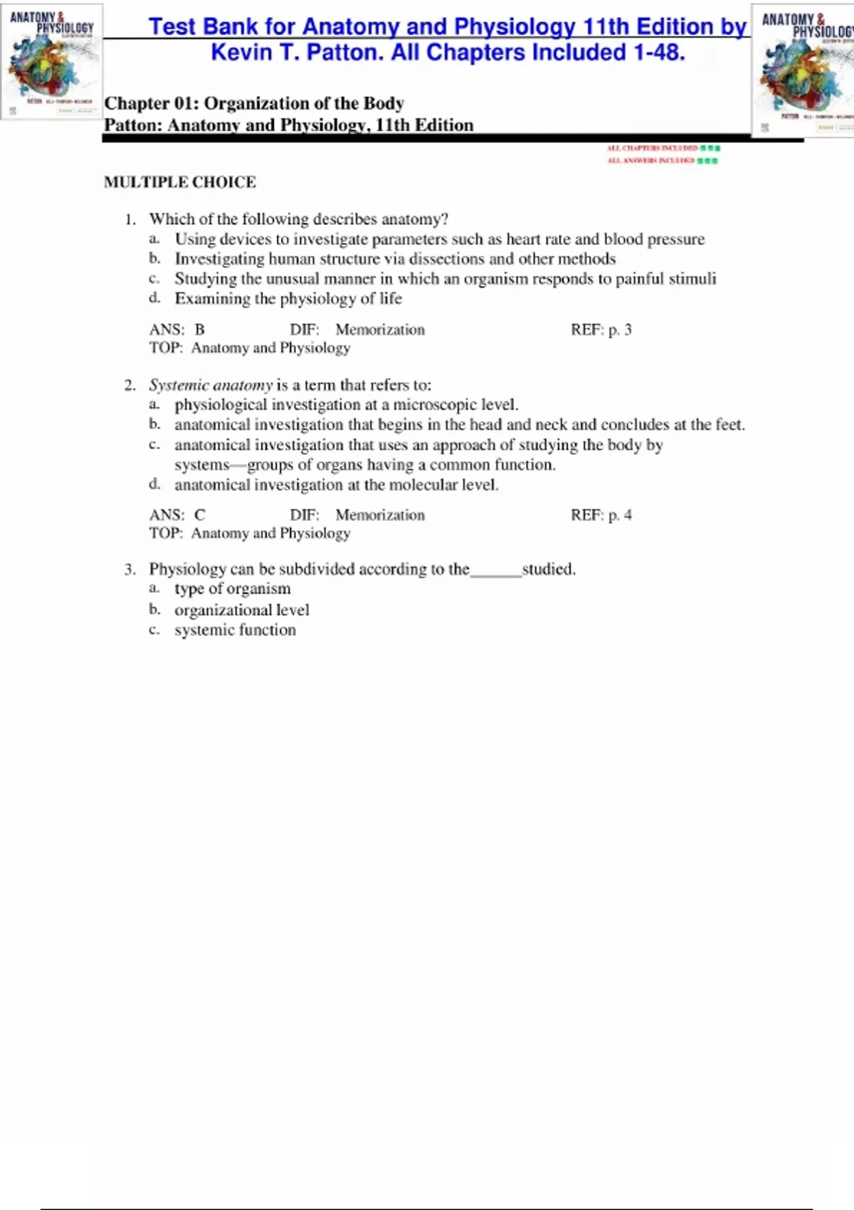 TEST BANK FOR Anatomy and Physiology 11th Edition Patton.||ALL CHAPTERS 1-48 INCLUDED WITH QUESTIONS AND ANSWERS.||LATEST EDITION.