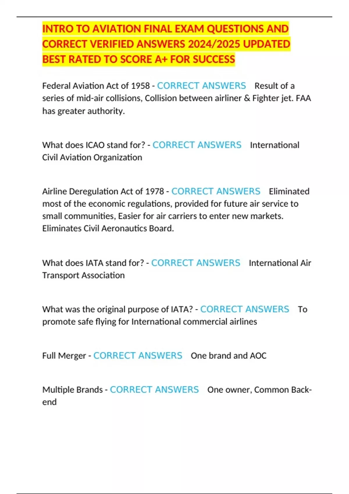INTRO TO AVIATION FINAL EXAM QUESTIONS AND