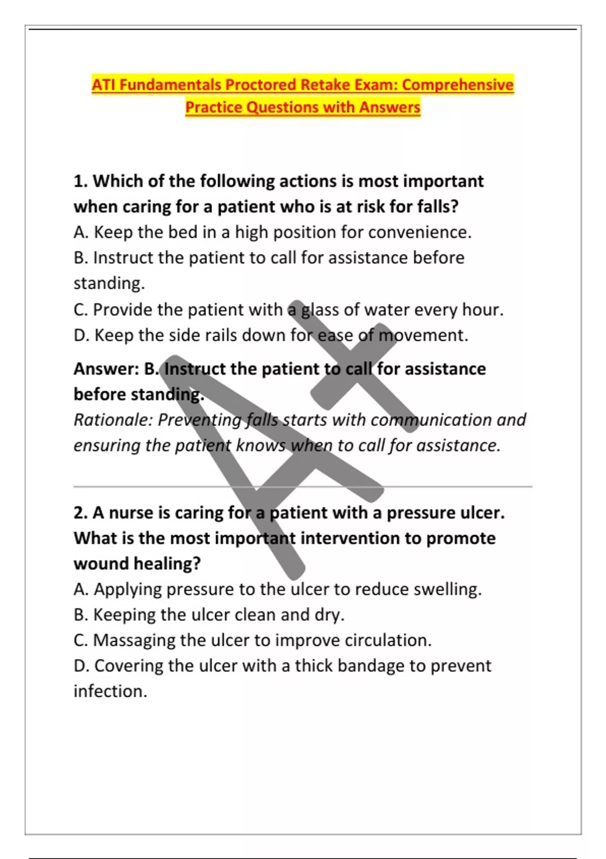 ATI Fundamentals Proctored Retake Exam: Comprehensive Practice Questions with Answers