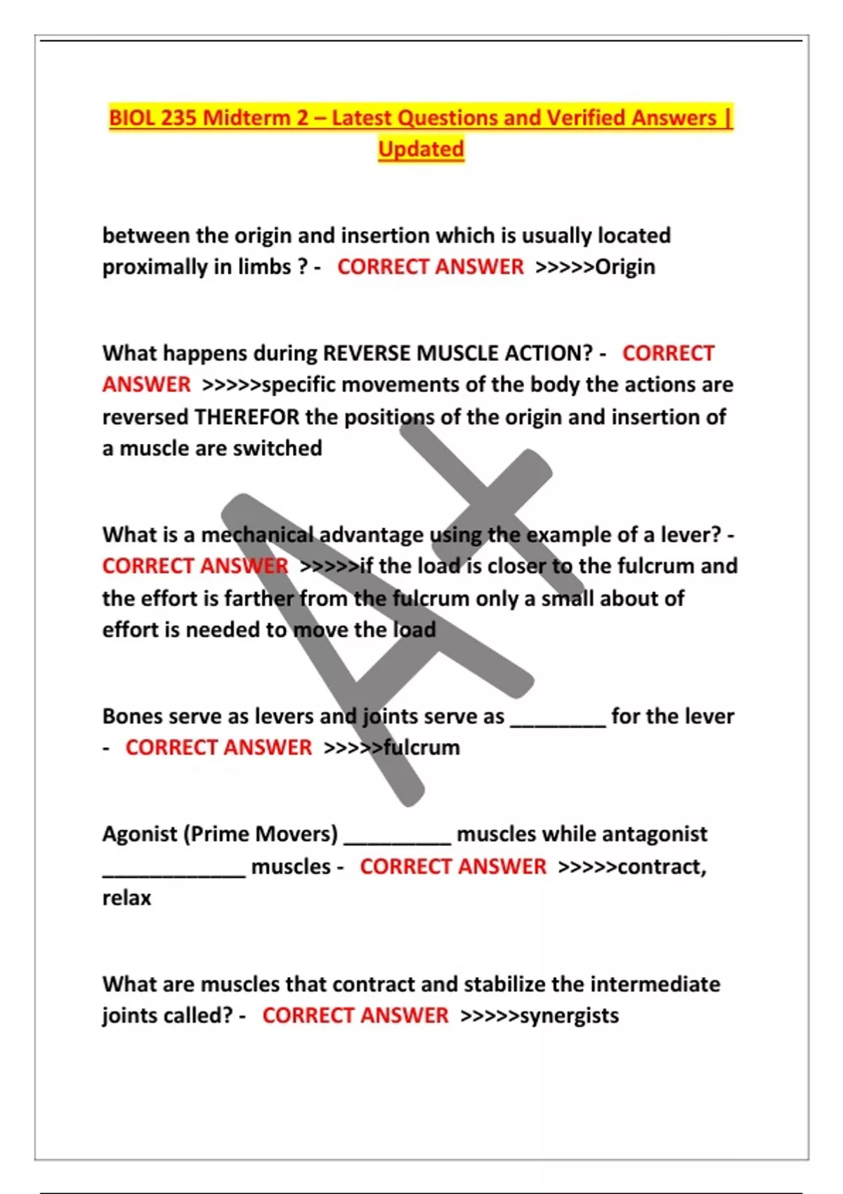 BIOL 235 Midterm 2 – Latest Questions and Verified Answers |