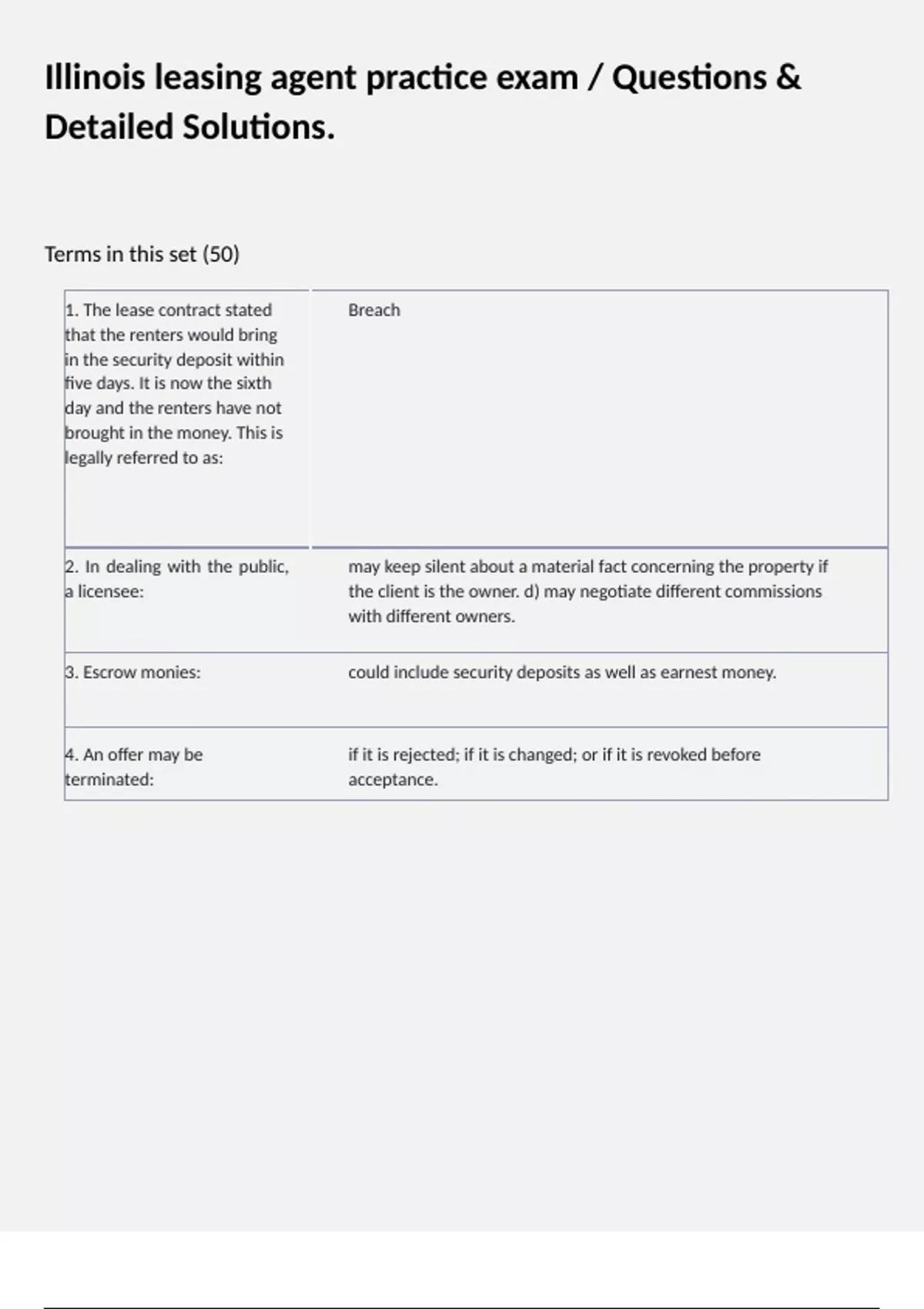 Illinois leasing agent practice exam / Questions & Detailed Solutions.