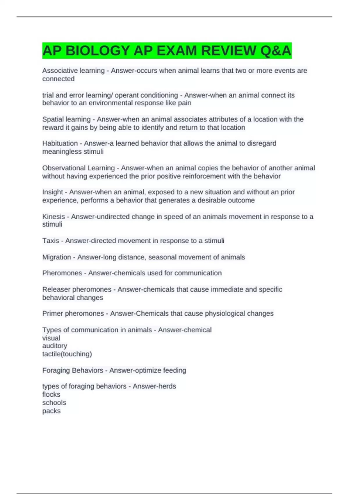 AP BIOLOGY AP EXAM REVIEW Q&A