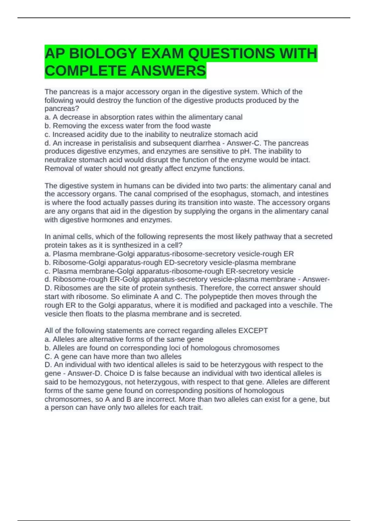 AP BIOLOGY EXAM QUESTIONS WITH