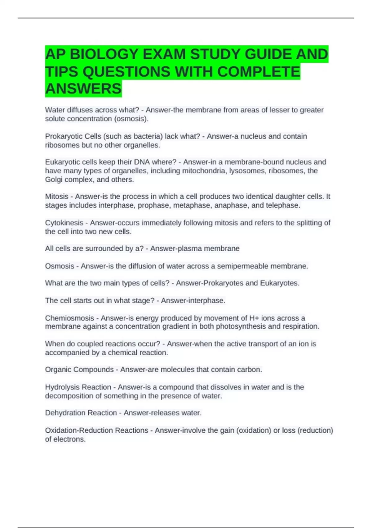 AP BIOLOGY EXAM STUDY GUIDE AND