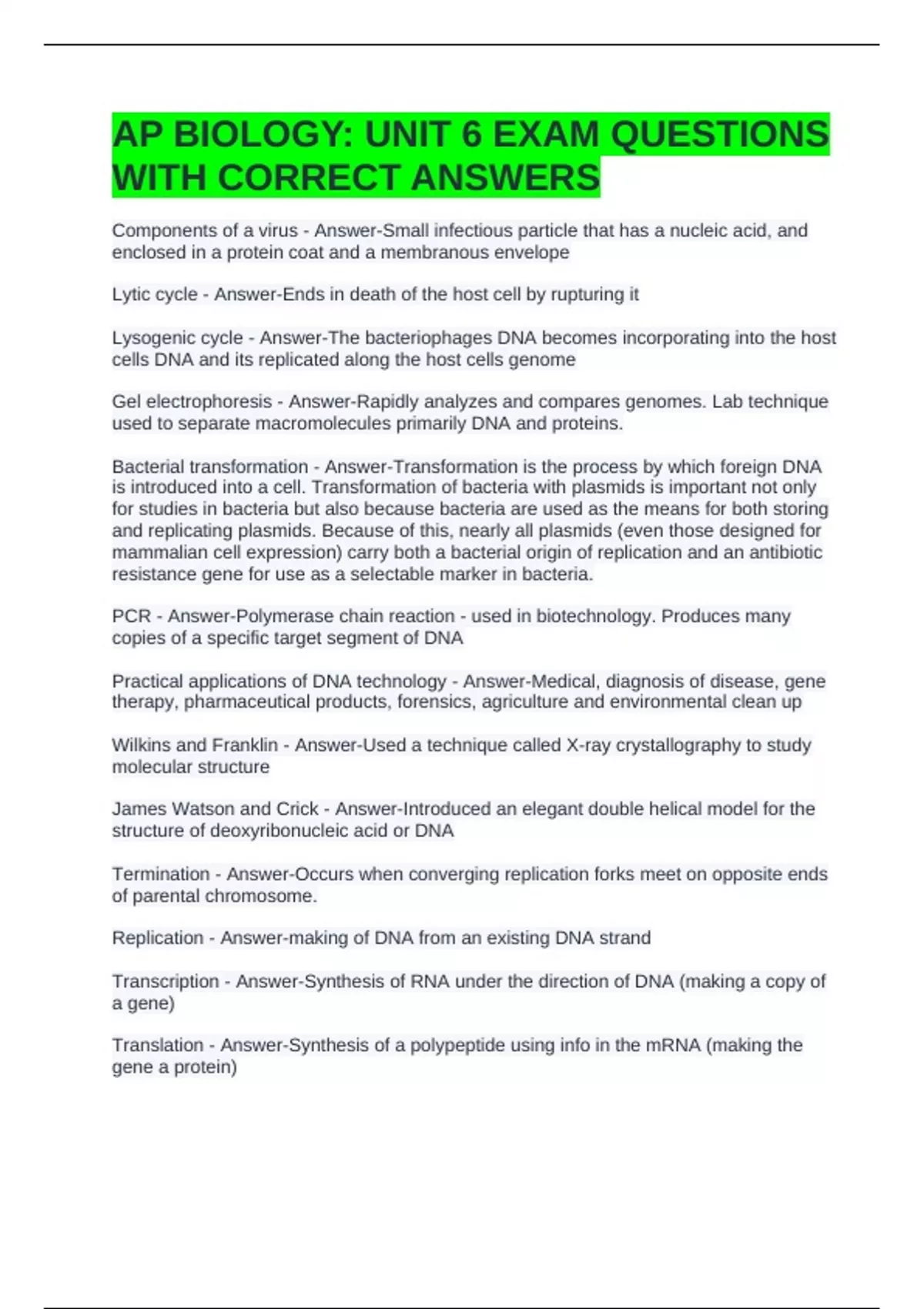 AP BIOLOGY: UNIT 6 EXAM QUESTIONS WITH CORRECT ANSWERS