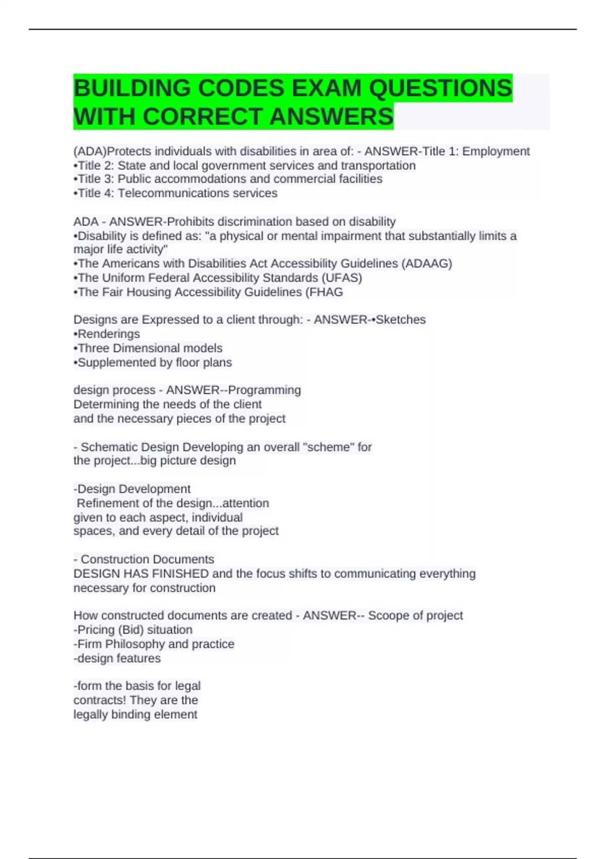 BUILDING CODES EXAM QUESTIONS WITH CORRECT ANSWERS