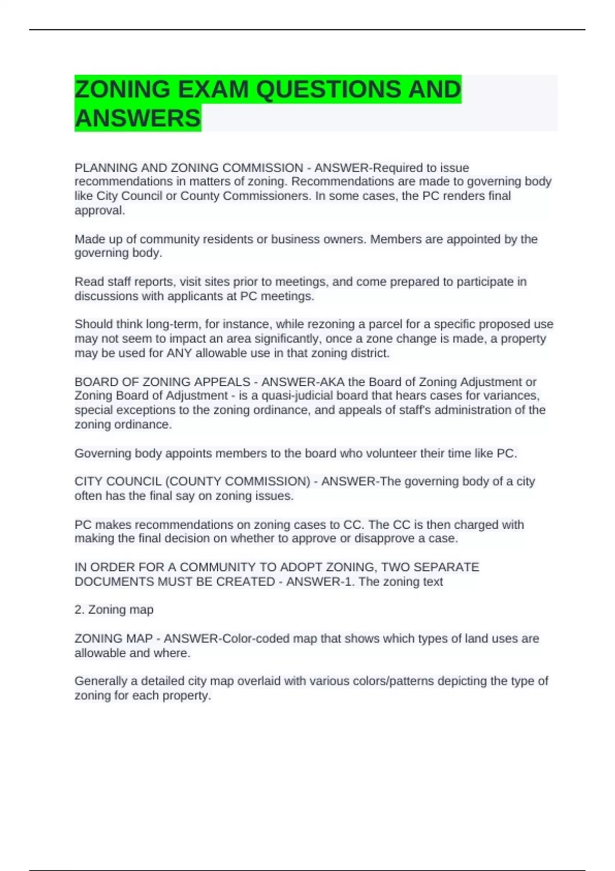 DOCUMENTS MUST BE CREATED - ANSWER-1. The zoning text