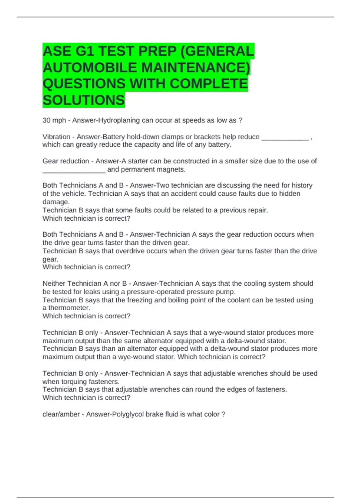 ASE G1 TEST PREP (GENERAL AUTOMOBILE MAINTENANCE) QUESTIONS WITH COMPLETE SOLUTIONS