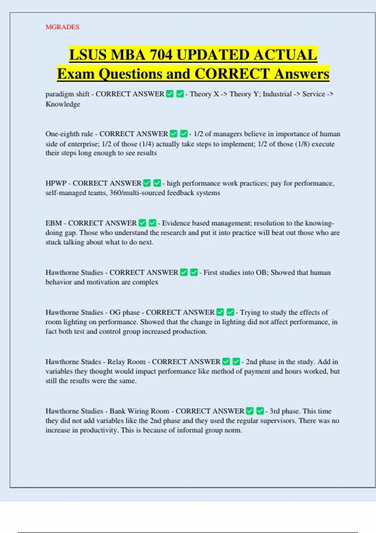 Hawthorne Studies - CORRECT ANSWER - First studies into OB; Showed that human