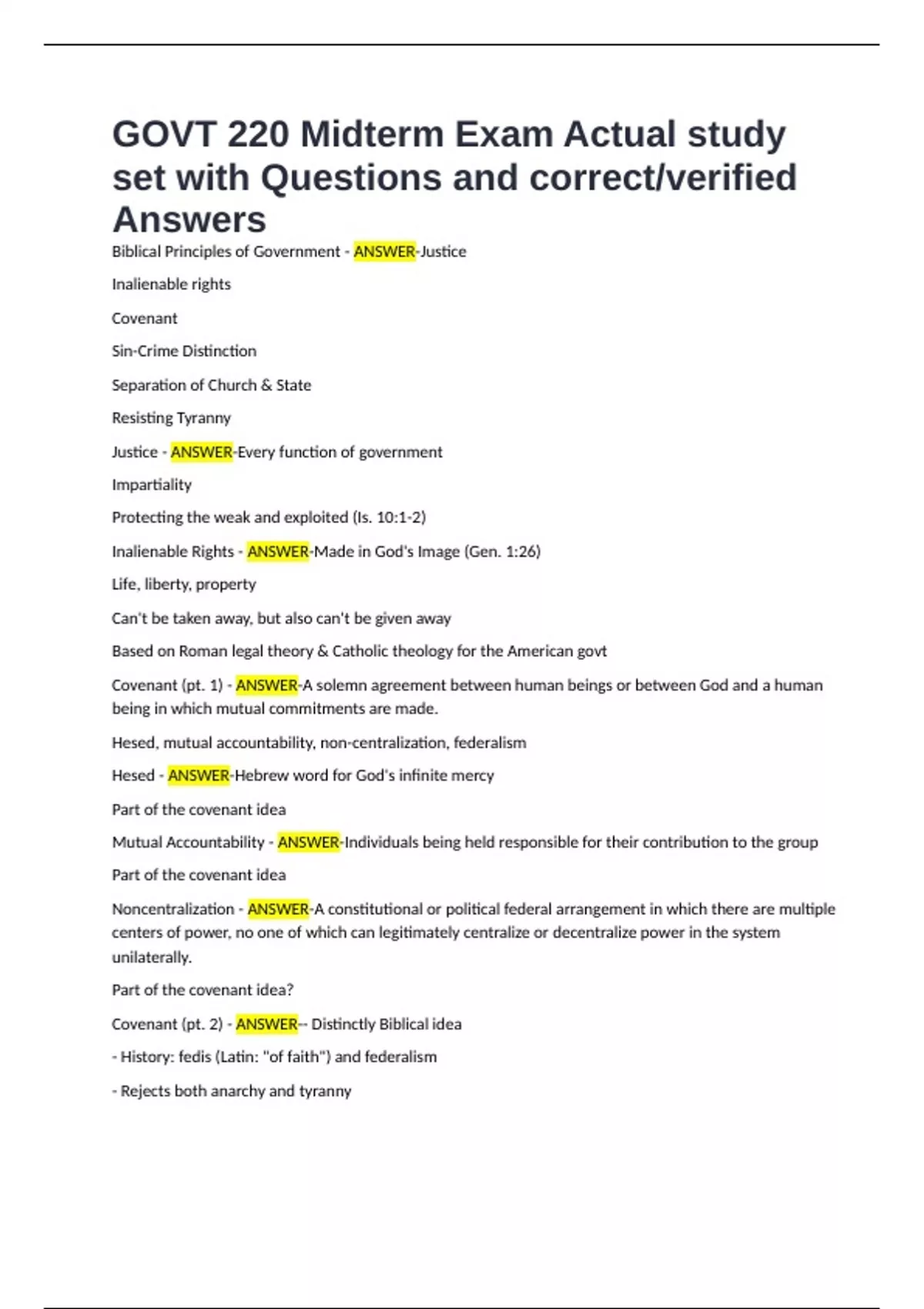 Covenant (pt. 2) - ANSWER-- Distinctly Biblical idea