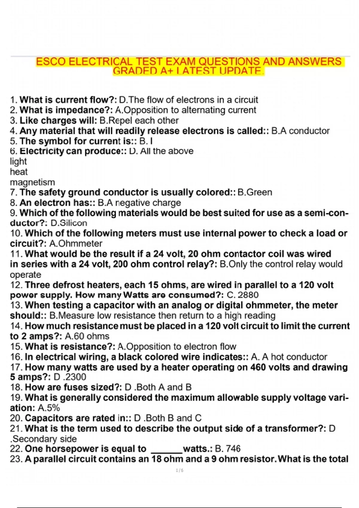 ESCO ELECTRICAL TEST EXAM QUESTIONS AND ANSWERS GRADED A+ LATEST UPDATE. ESCO electrical test exams latest ESCO test questions A+ graded ESCO answers ESCO electrical exam updates 2025 ESCO test questions ESCO test question answers electrical test exam prep ESCO electrical certification new ESCO test updates A+ ESCO exam answers latest electrical test ESCO updated ESCO questions 2023 ESCO electrical practice test best ESCO exam answers top graded ESCO test latest ESCO certification questions 2023 ESCO electrical exams ESCO exam study materials electrical certification test ESCO graded ESCO electrical answers newest ESCO test questions best ESCO test preparation ESCO exam questions and answers official ESCO electrical test esco electrical exam review