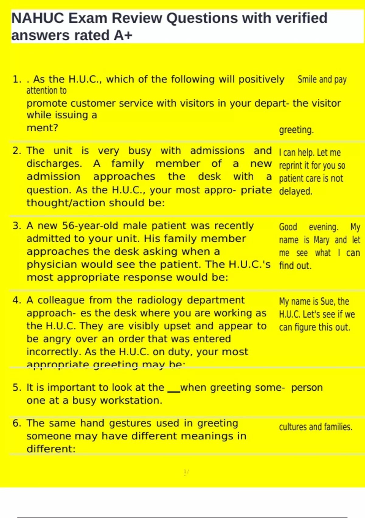 1. . As the H.U.C., which of the following will positively Smile and pay