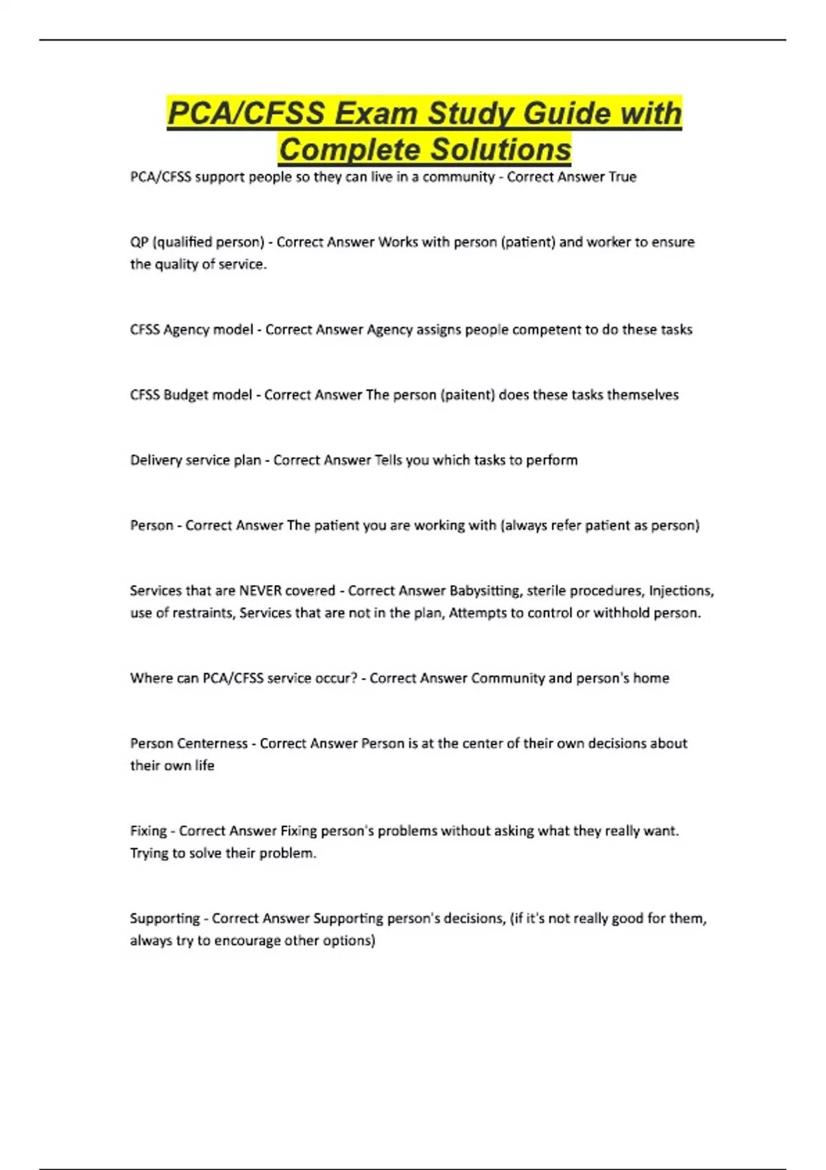 PCA/CFSS Exam Study Guide with Complete Solutions