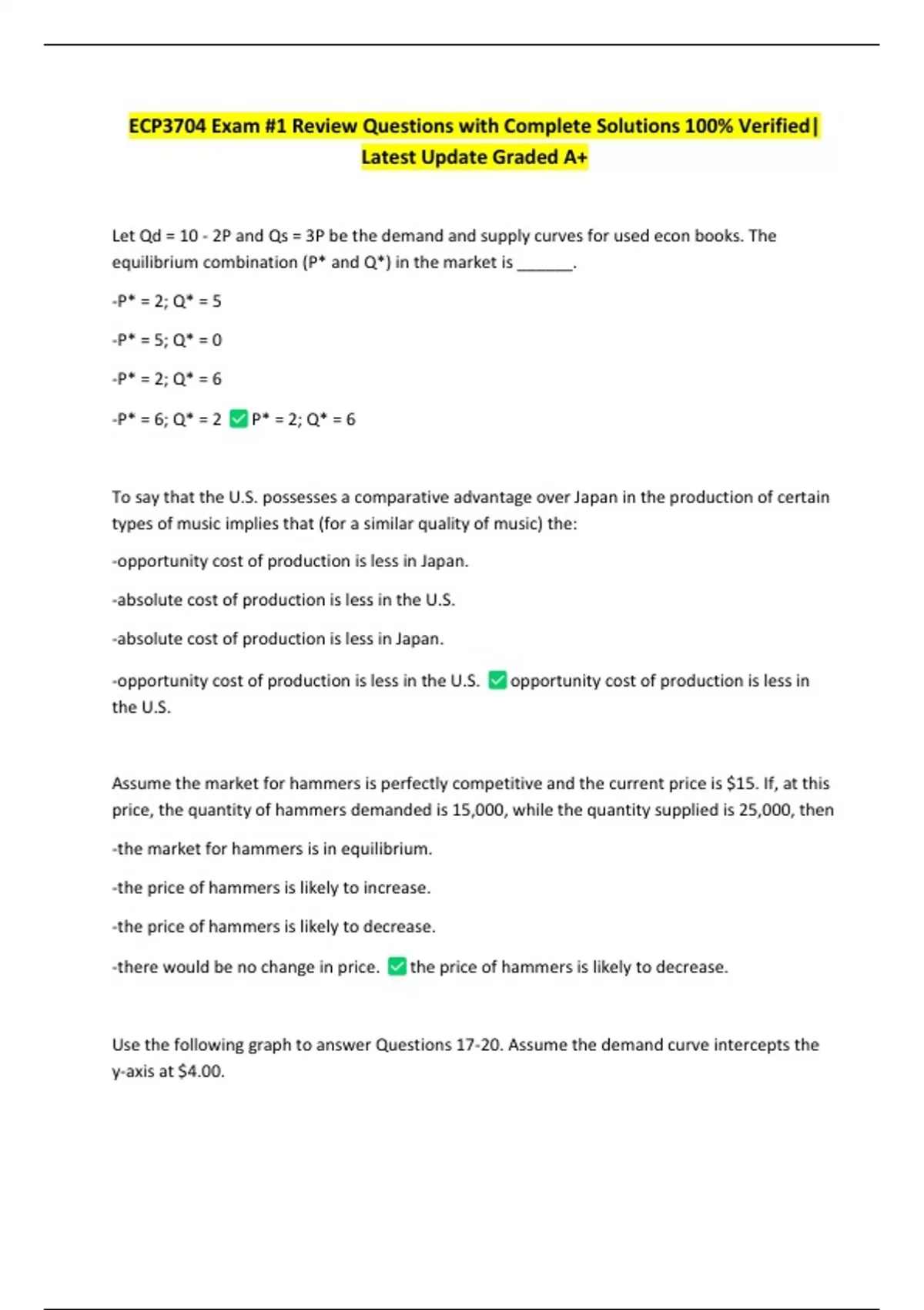 TOP GRADES FOR VERIFIED LEARNERS!!! Ace Your Studies with Our Exams, Test Banks & Study Guides! Looking for reliable study materials? We’ve got you covered—Nursing, Business, Science, Engineering, and more! Access exams, test banks, and guides that help you study smarter and achieve top grades. Need something specific? Contact us and get it instantly! Loved your purchase? Leave a quick review to boost satisfaction and help other students succeed. Also, refer 2 colleagues to this page and get one document free. All the best in your Career.