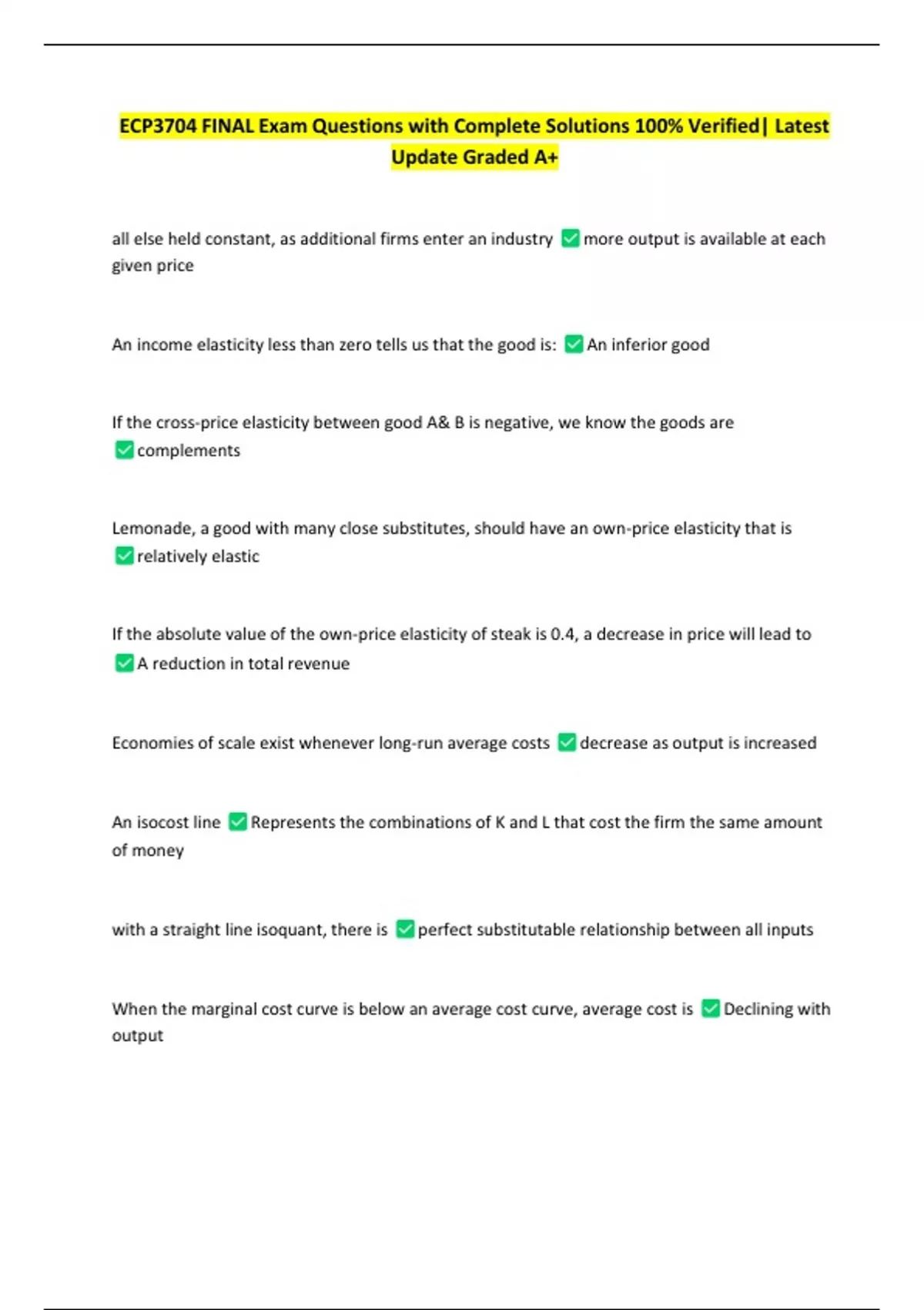 ECP3704 FINAL Exam Questions with Complete Solutions 100% Verified| Latest