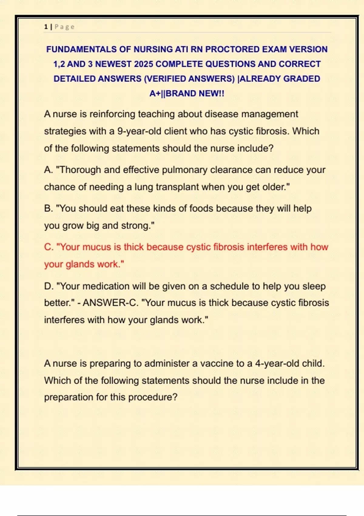 FUNDAMENTALS OF NURSING ATI RN PROCTORED EXAM VERSION 1,2 AND 3 NEWEST 2025 COMPLETE QUESTIONS AND CORRECT DETAILED ANSWERS (VERIFIED ANSWERS) |ALREADY GRADED A+||BRAND NEW!!