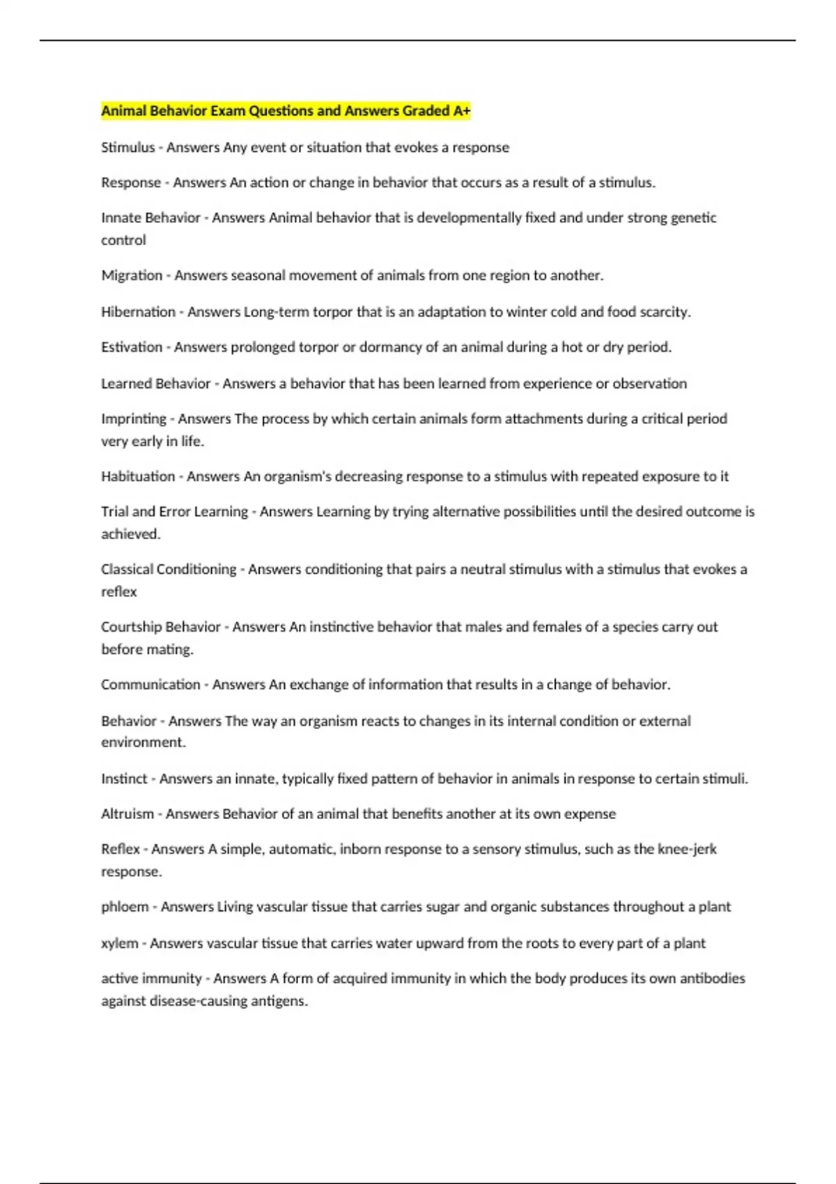 Learned Behavior - Answers a behavior that has been learned from experience or observation