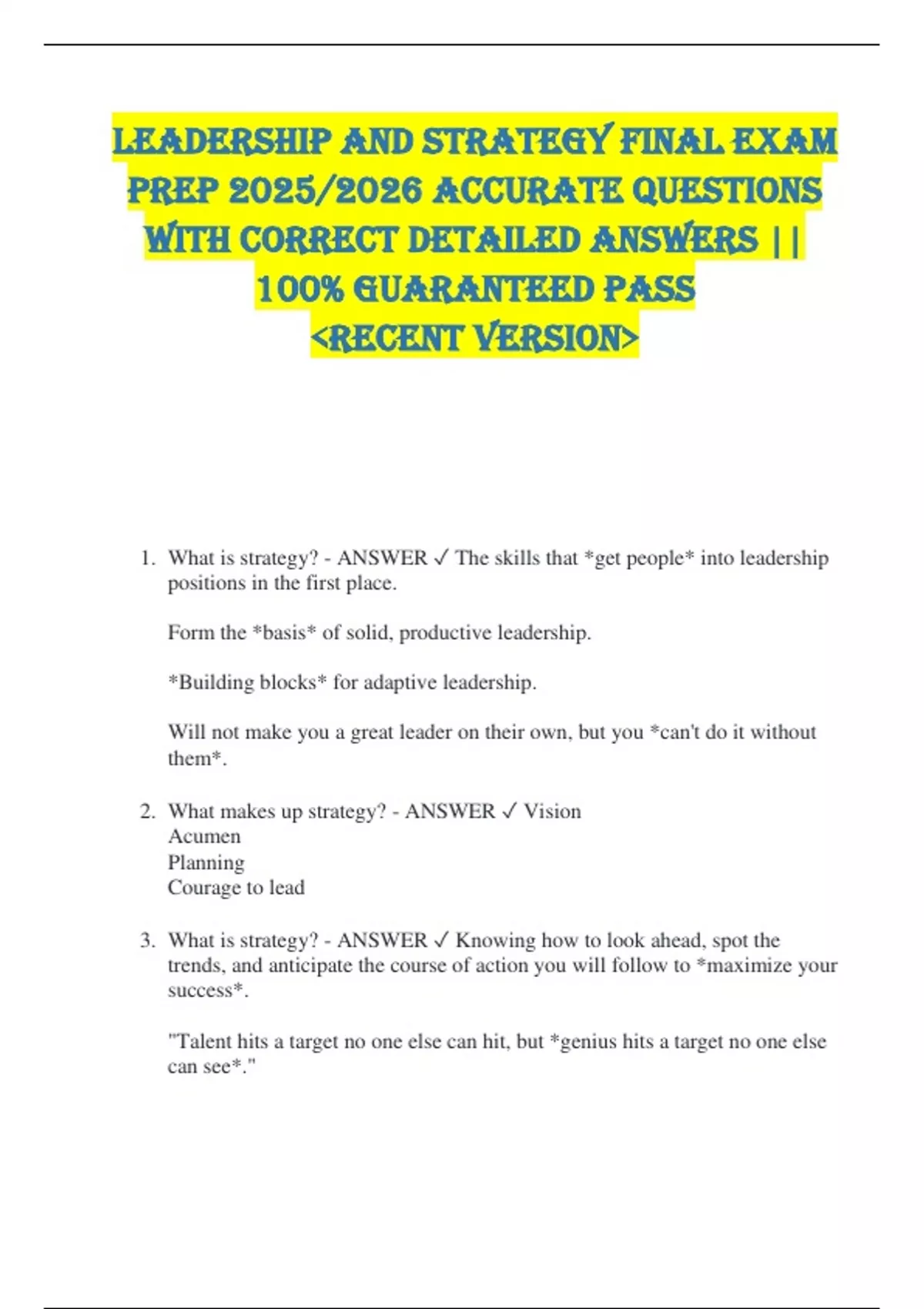 1. What is strategy? - ANSWER ✓ The skills that *get people* into leadership