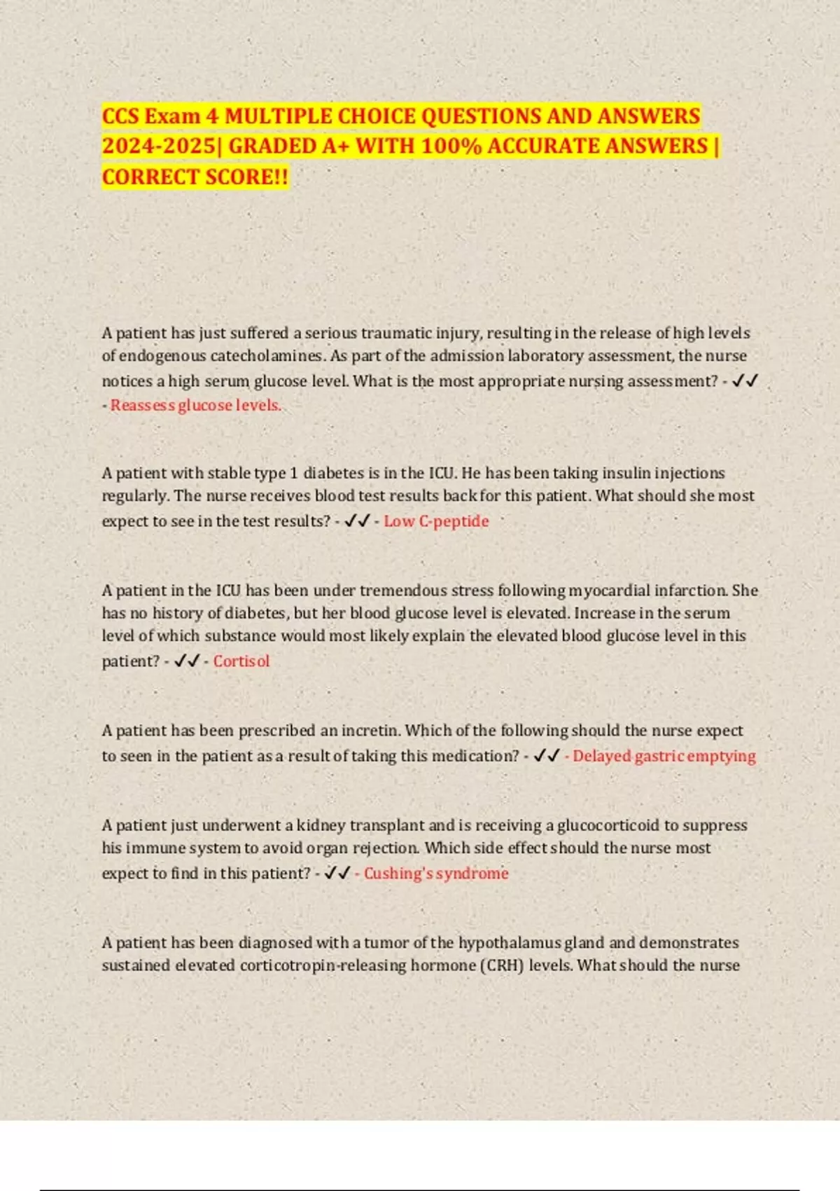 patient? - ✔✔ - Cortisol