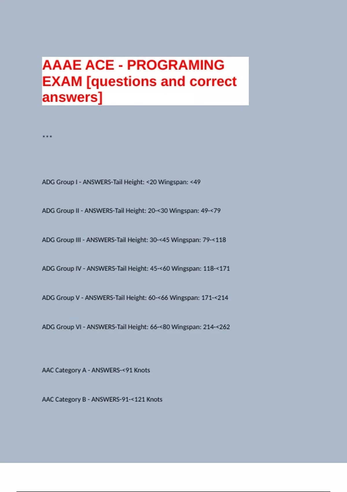 ADG Group VI - ANSWERS-Tail Height: 66-<80 Wingspan: 214-<262