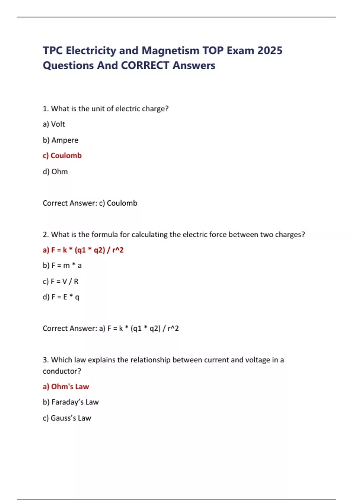 Correct Answer: a) F = k * (q1 * q2) / r^2