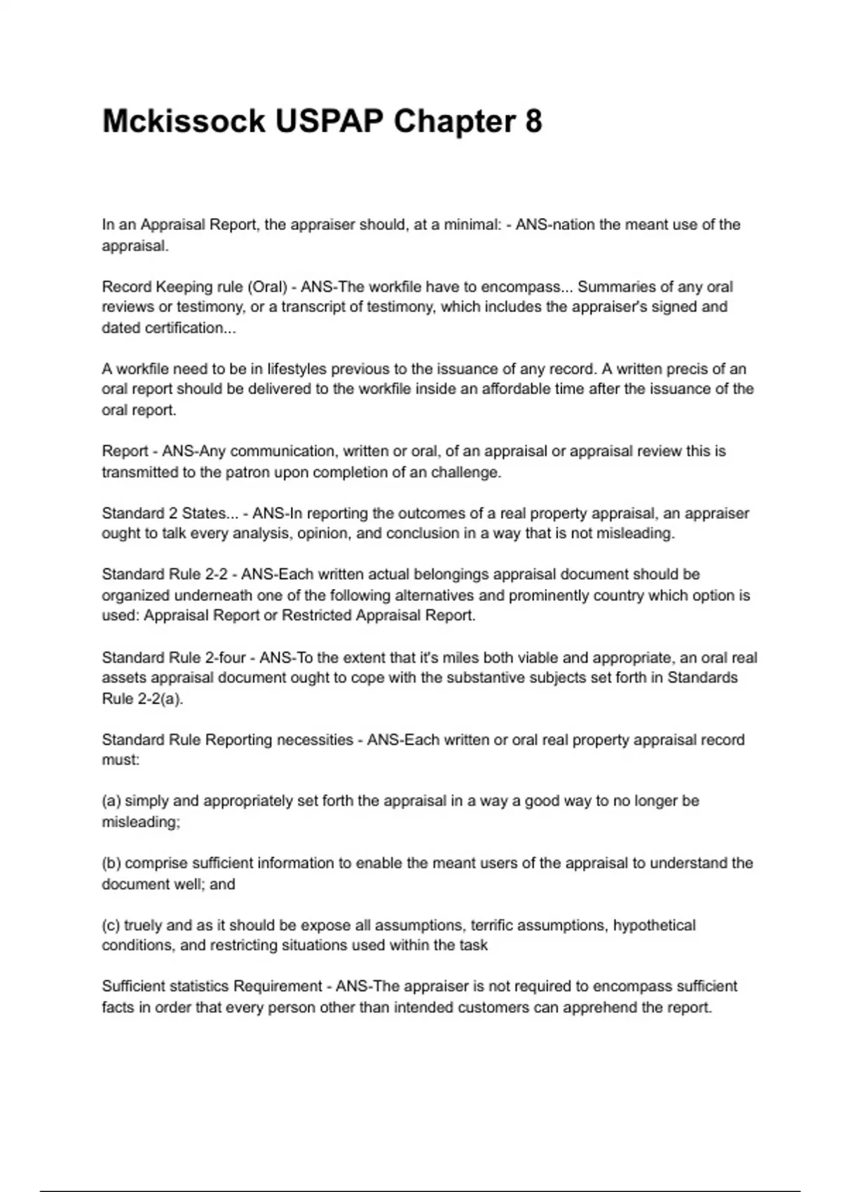 Standard Rule Reporting necessities - ANS-Each written or oral real property appraisal record