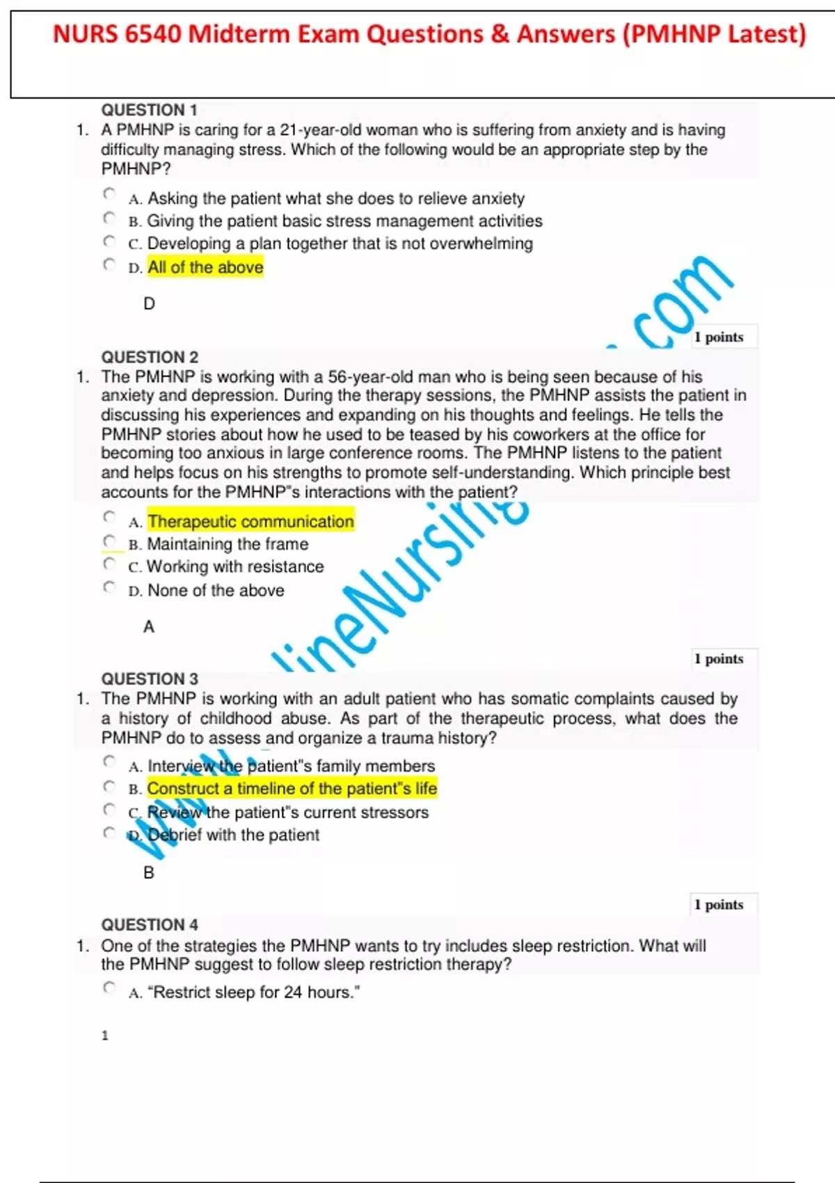 NURS 6540 Midterm Exam Questions & Answers (PMHNP Latest)