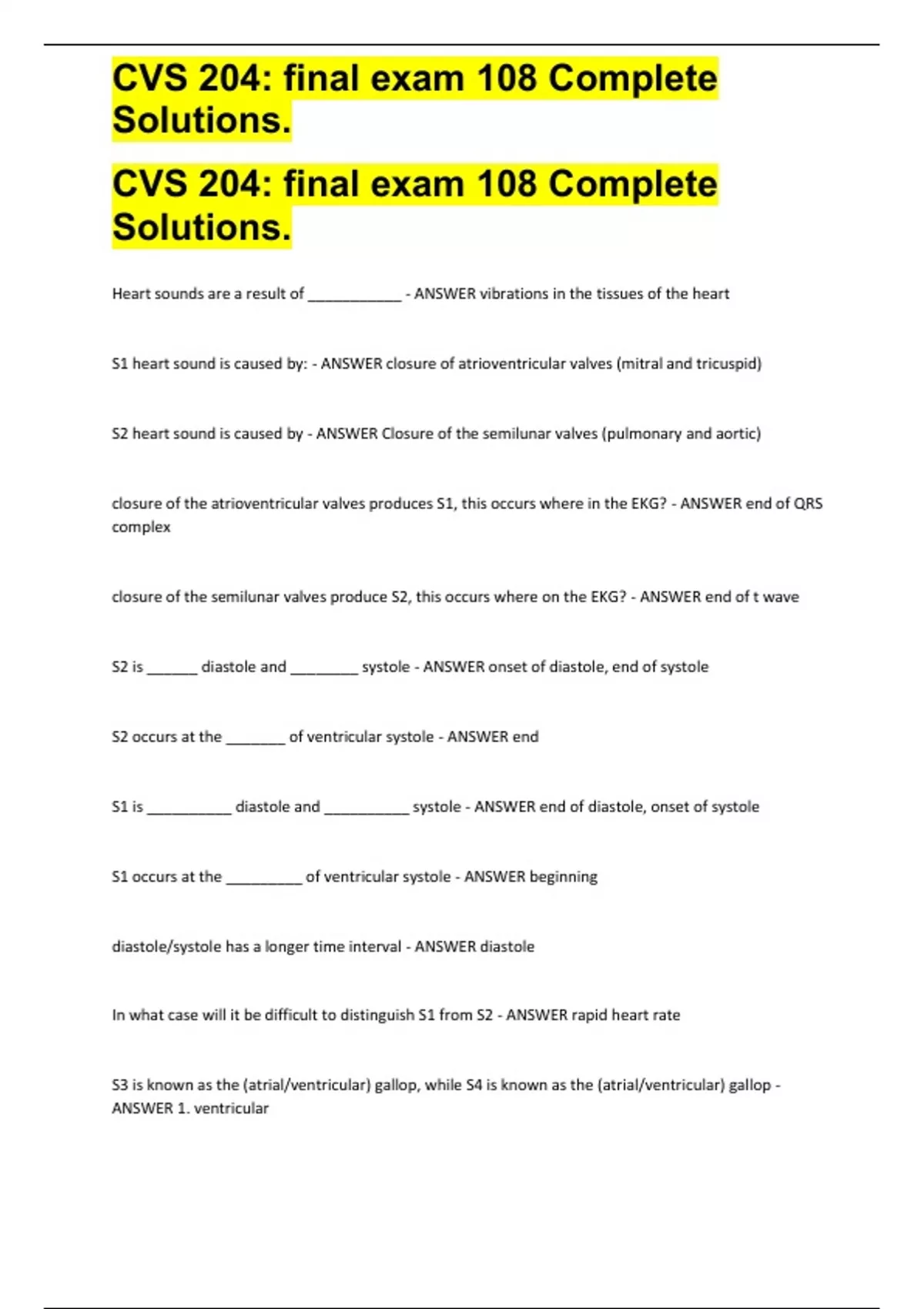 Heart sounds are a result of ___________ - ANSWER vibrations in the tissues of the heart