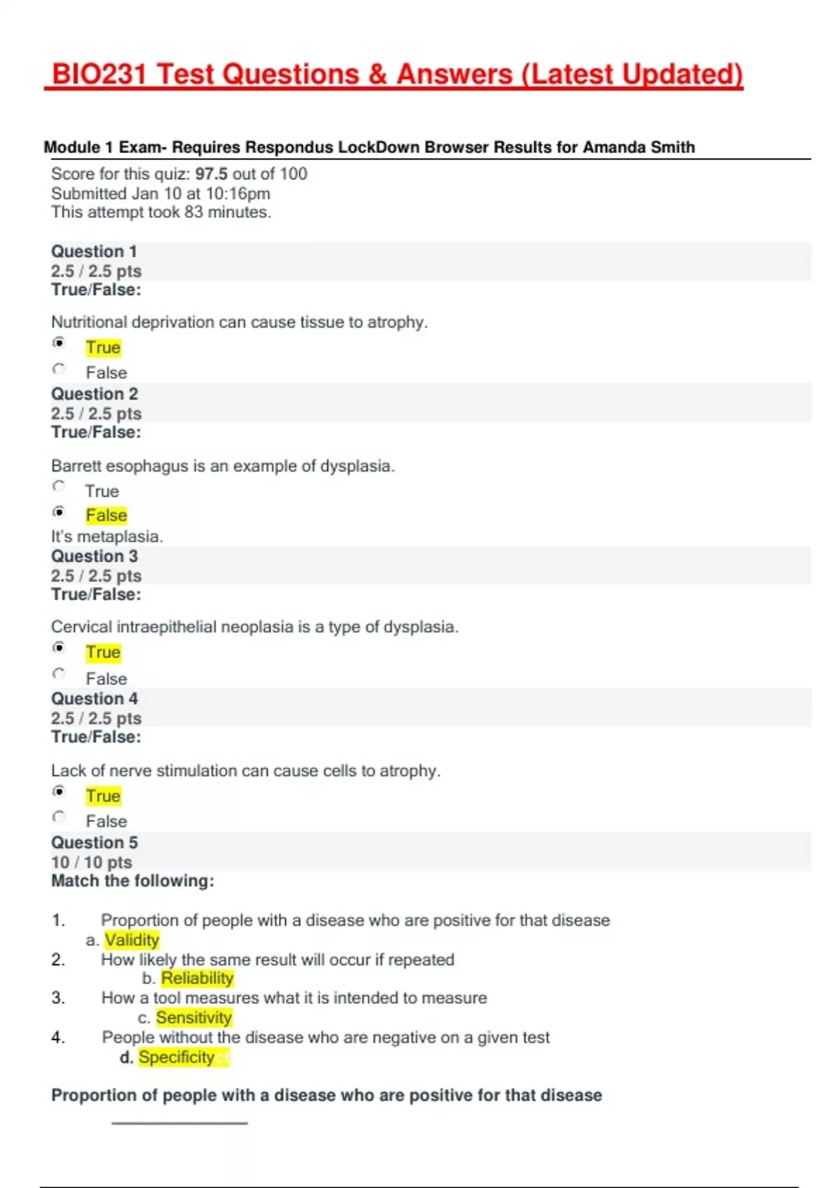 Module 1 Exam- Requires Respondus LockDown Browser Results for Amanda Smith