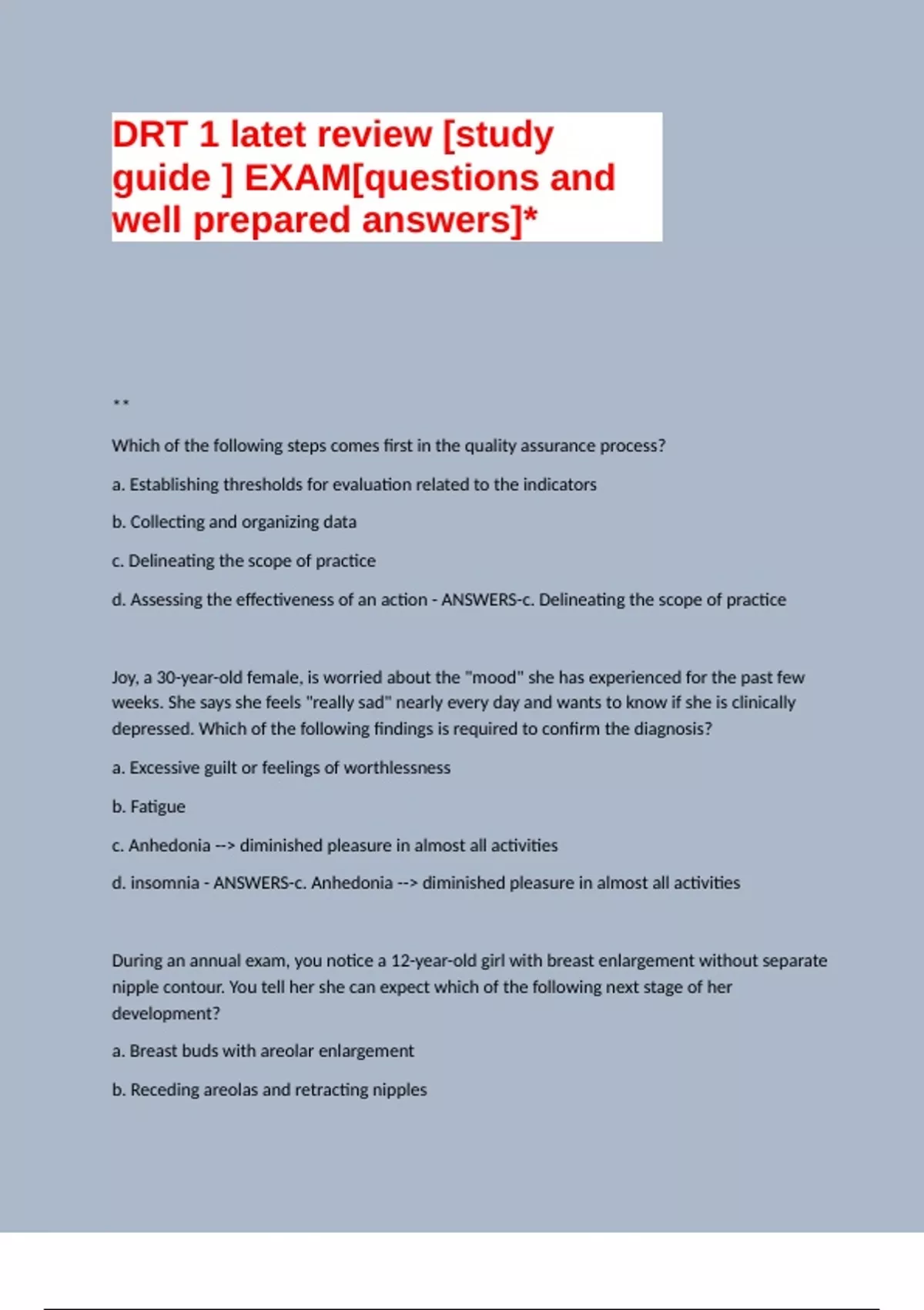 d. Onset of menses - ANSWERS-d. Onset of menses