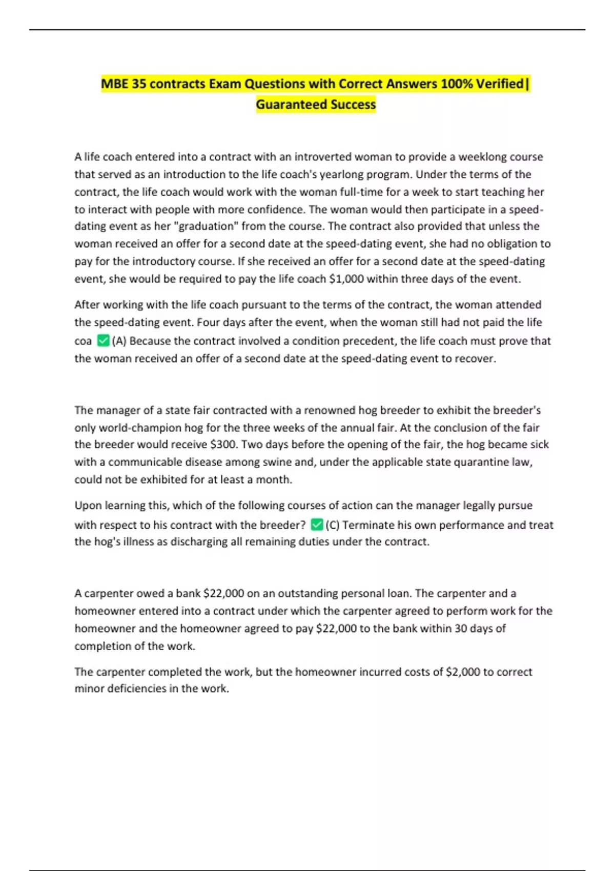 coa (A) Because the contract involved a condition precedent, the life coach must prove that