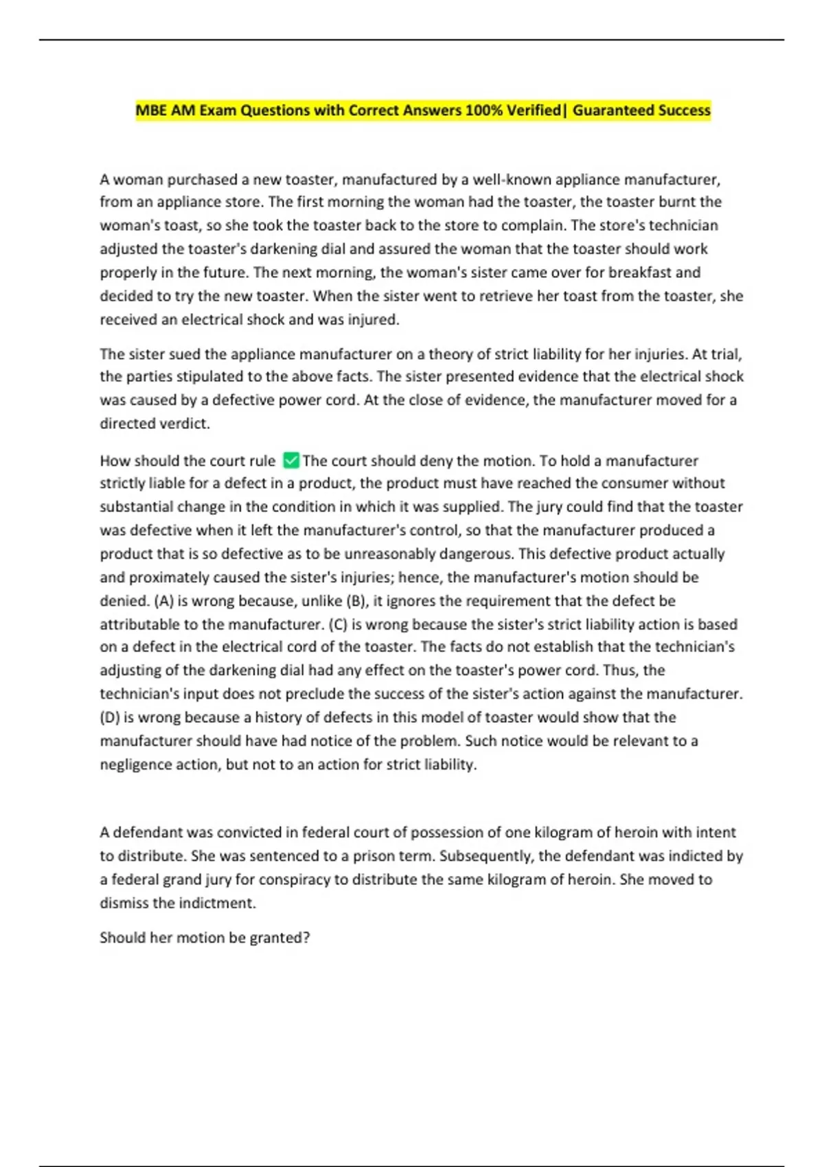 MBE AM Exam Questions with Correct Answers 100% Verified| Guaranteed Success