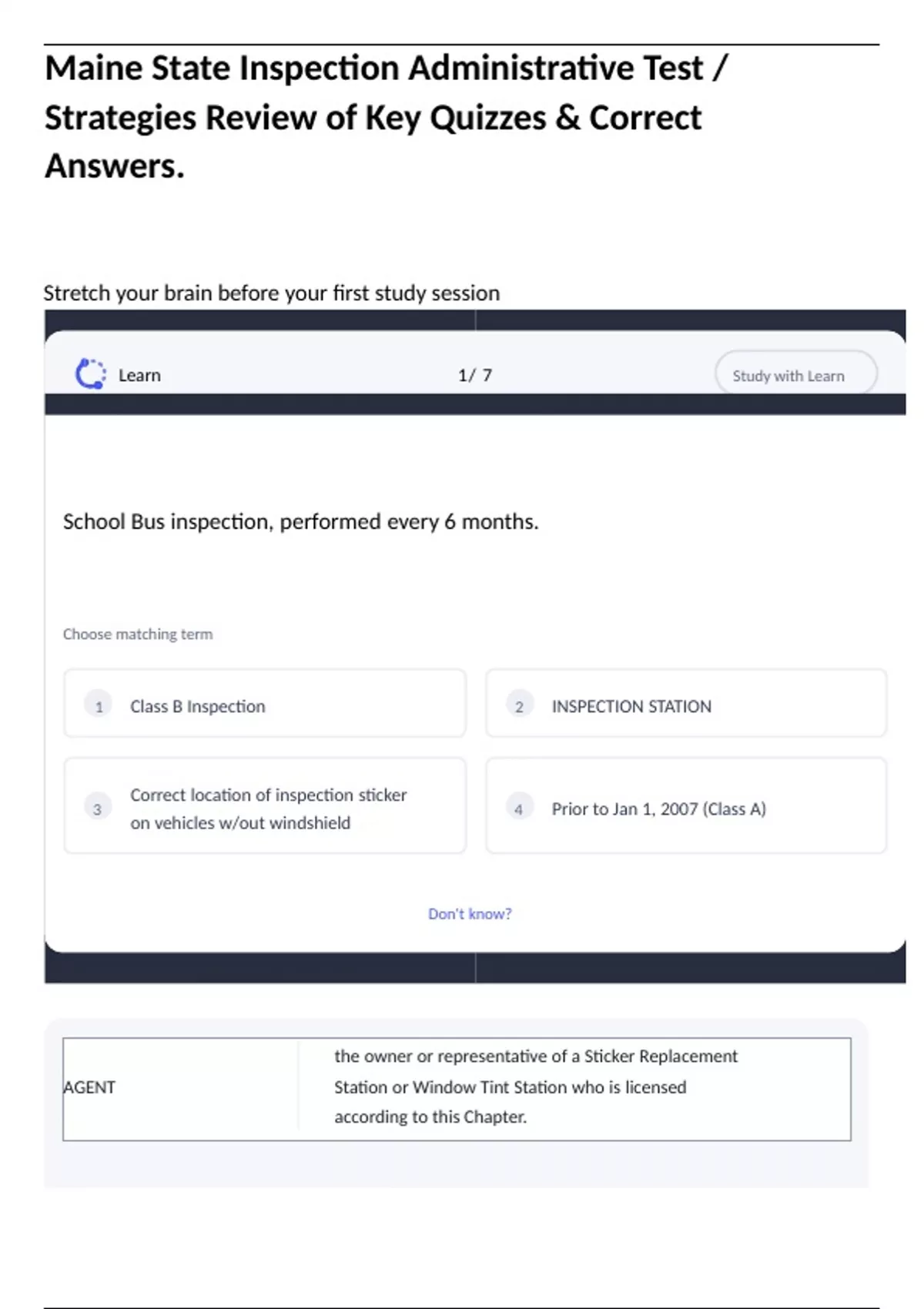 Maine State Inspection Administrative Test / Strategies Review of Key Quizzes & Correct Answers.