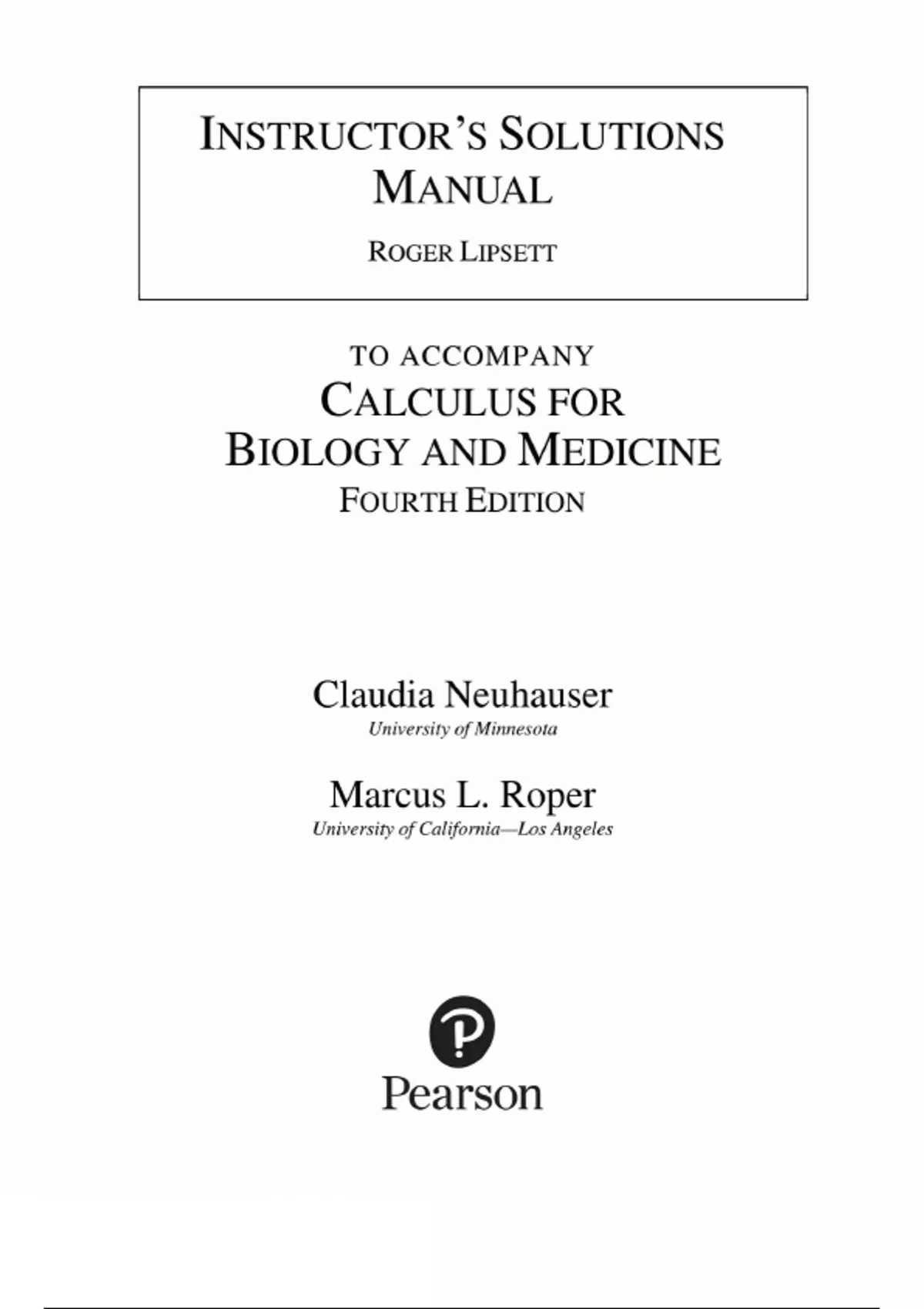 Instructor's Solutions Manual for Calculus for Biology and Medicine 4th Edition Claudia Neuhauser (All Chapters), complete guide