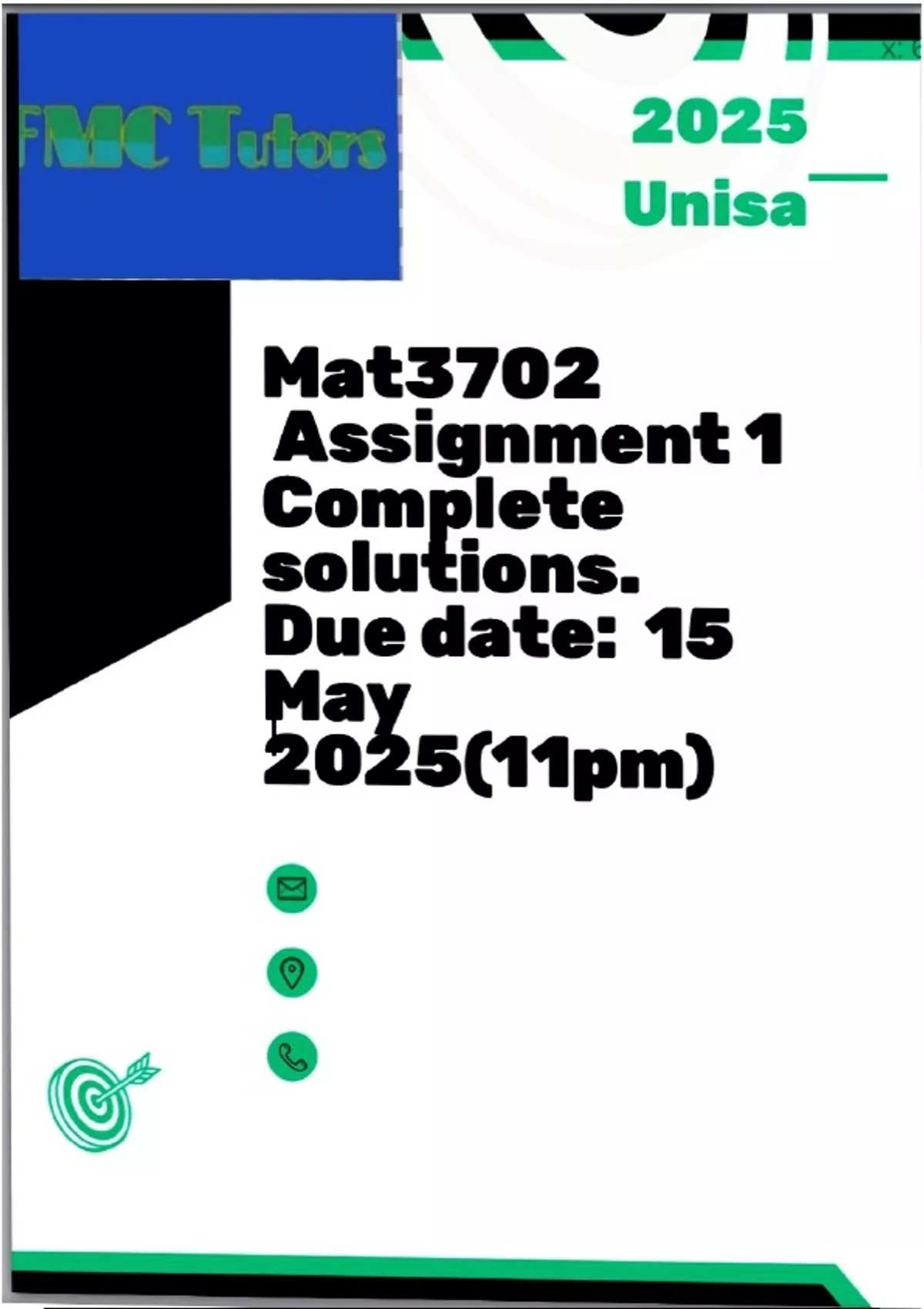 MAT3702 assignment 1 completed and detailed solutions 2025 Unisa. Excellent solution for each question where every question is explained in detail and step by step is given, so that you can ace these type of questions in the exam . Great solution document and great marks guaranteed.