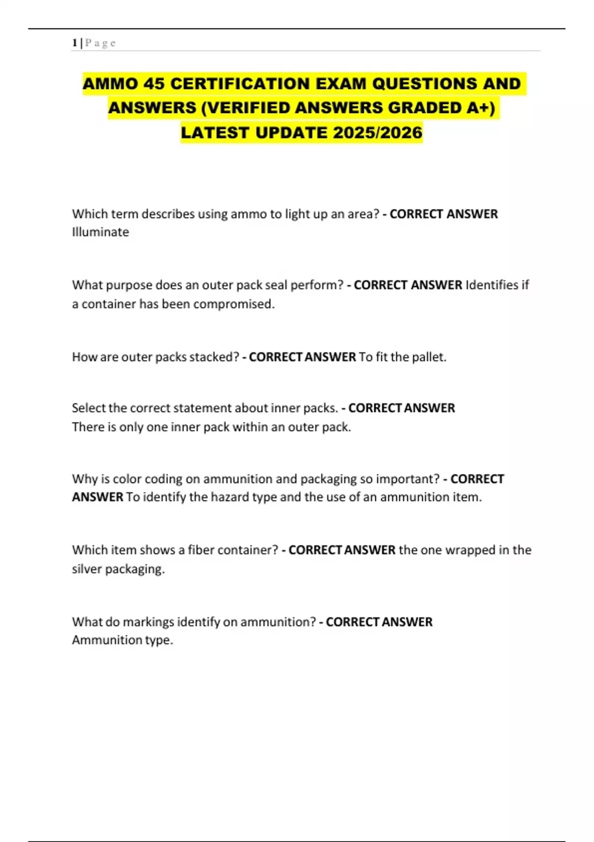 Get fully prepared for the AMMO 45 Certification Exam with this updated 2025/2026 guide. Features verified questions and A+ graded answers to help you pass with confidence. Ideal for military and civilian personnel.