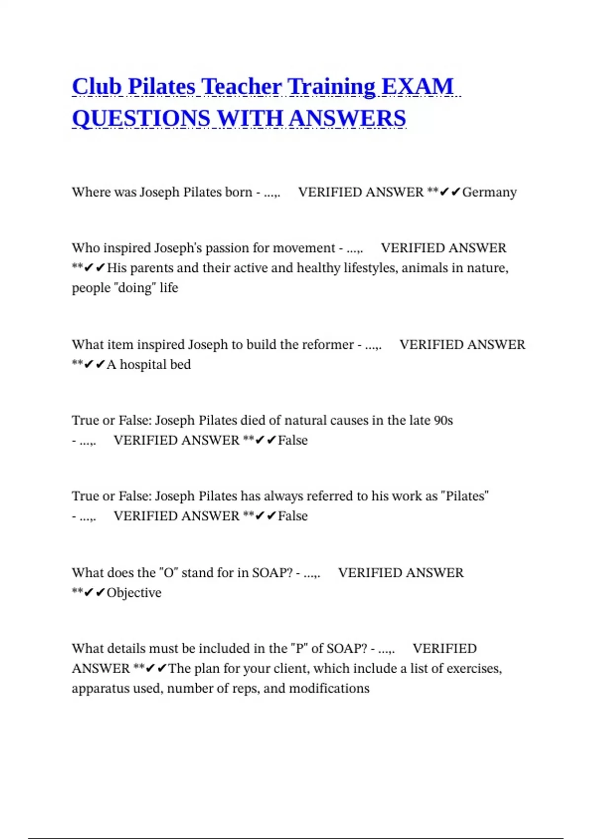 ANSWER **✔✔The Pilates instructor and Studio Management