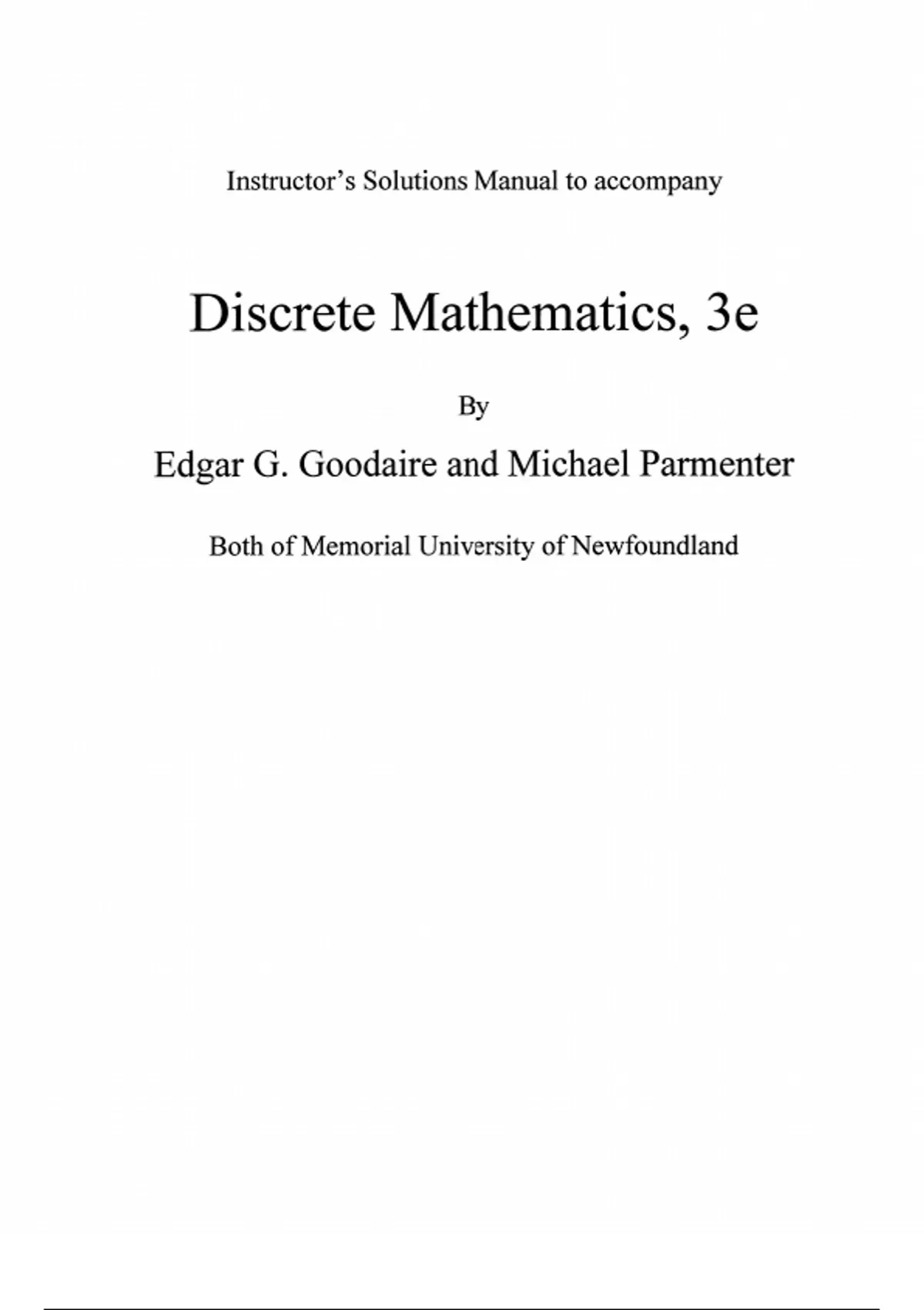 Solutions Manual for Discrete Mathematics with Graph Theory (Classic Version) 3rd Edition by Edgar Goodaire |All Chapters
