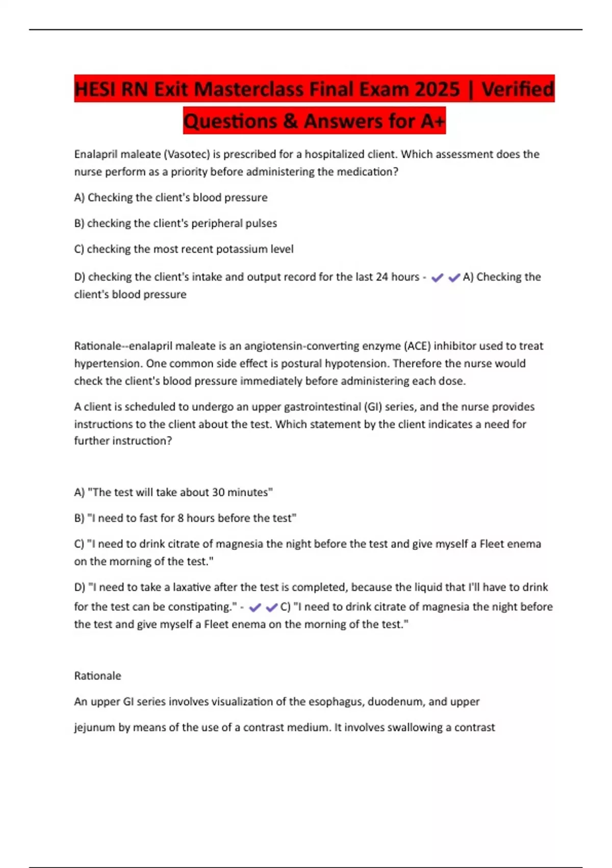 before the test. After an upper GI series, the client is prescribed a laxative to hasten