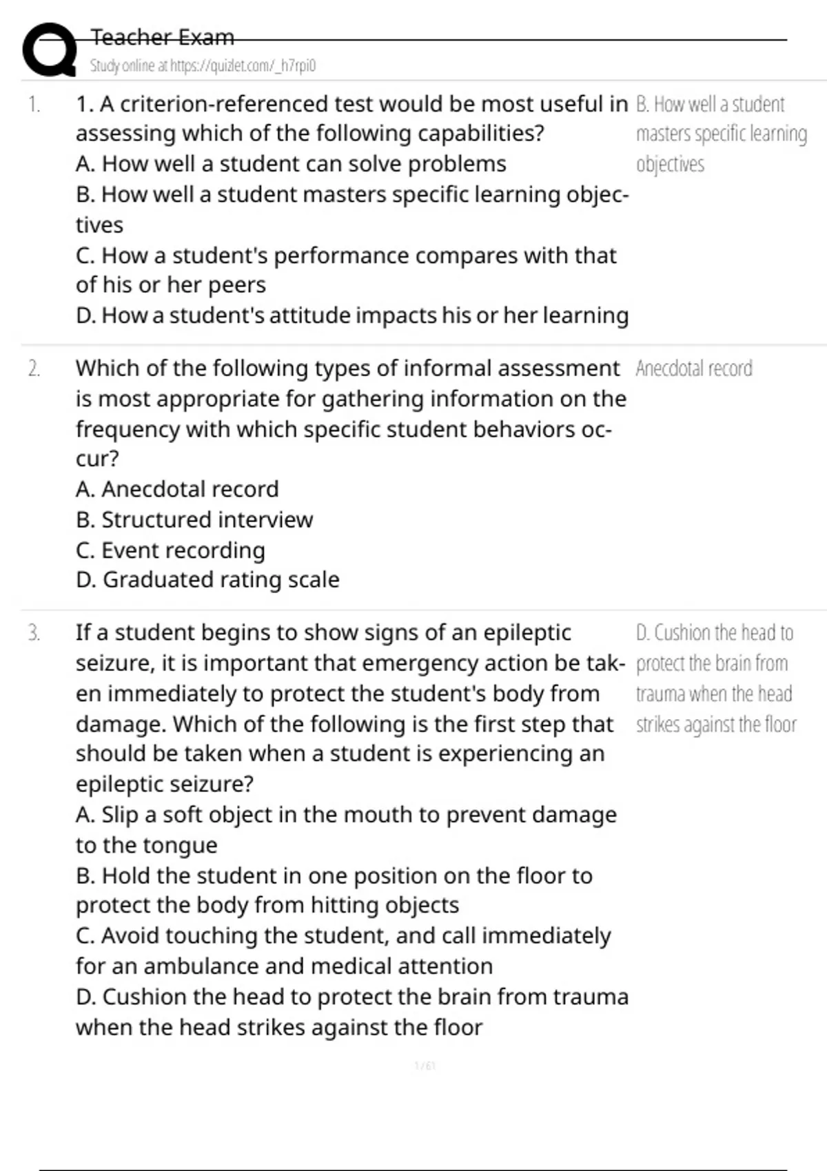 1. 1. A criterion-referenced test would be most useful in B. How well a student