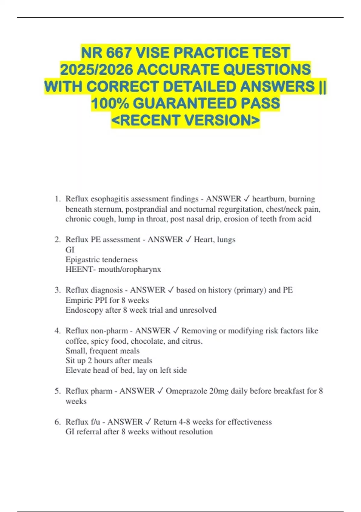 2. Reflux PE assessment - ANSWER ✓ Heart, lungs