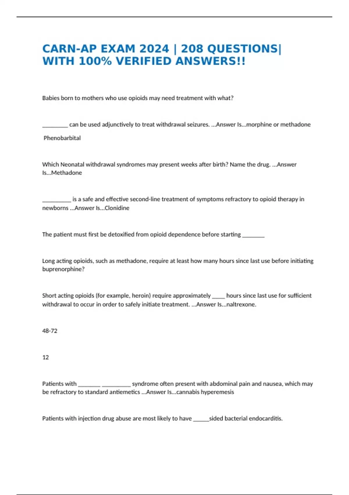 CARN-AP EXAM 2024 | 208 QUESTIONS| WITH 100% VERIFIED ANSWERS!!