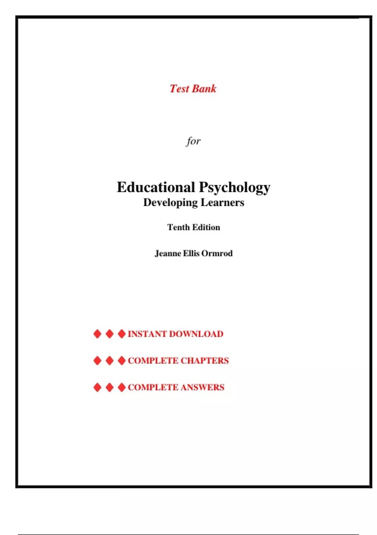 Test Bank for Educational Psychology: Developing Learners 10th Edition by Jeanne Ormrod |All Chapters