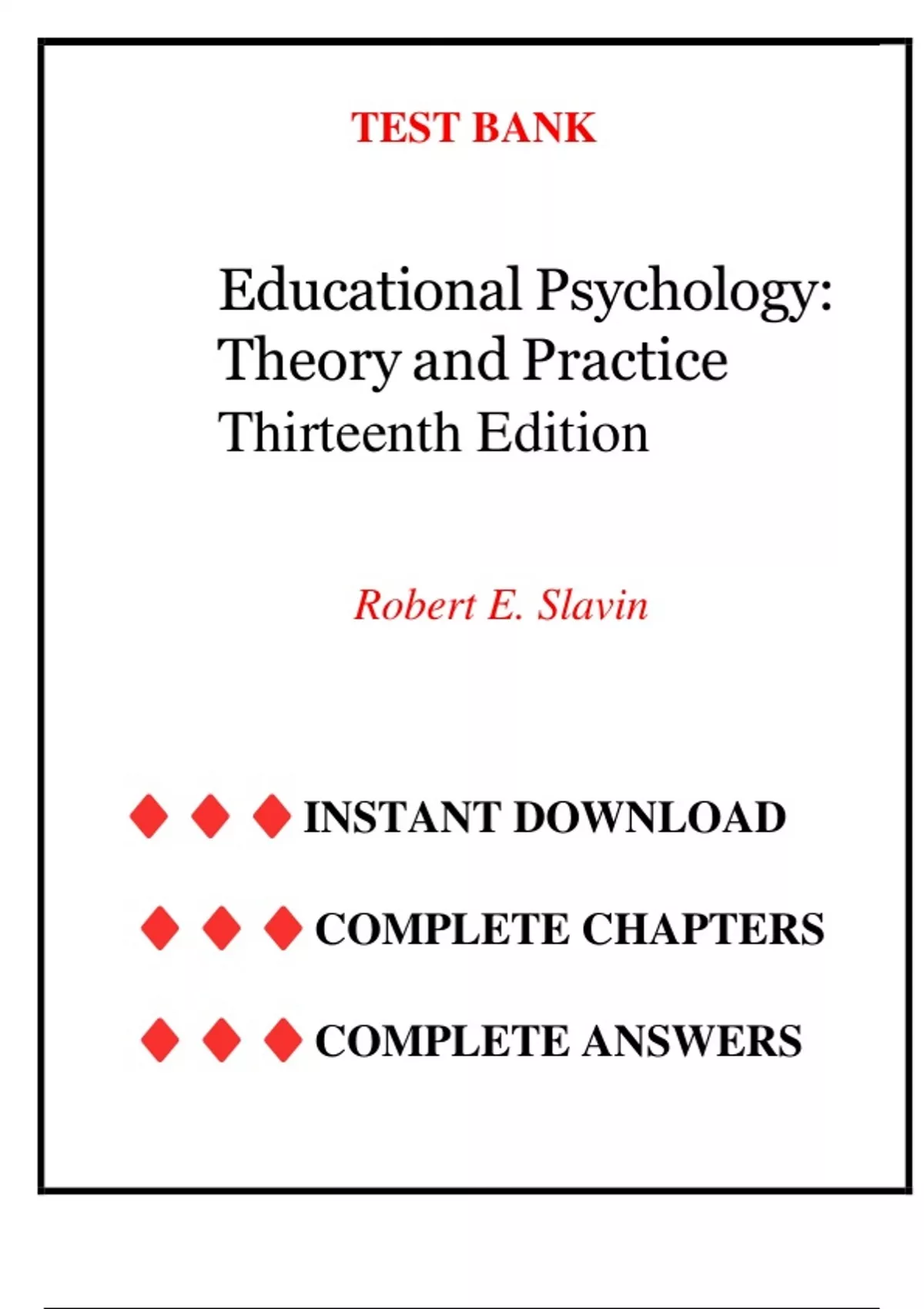 Test Bank for Educational Psychology: Theory and Practice, 13th edition by Robert E. Slavin |All Chapters 1-14