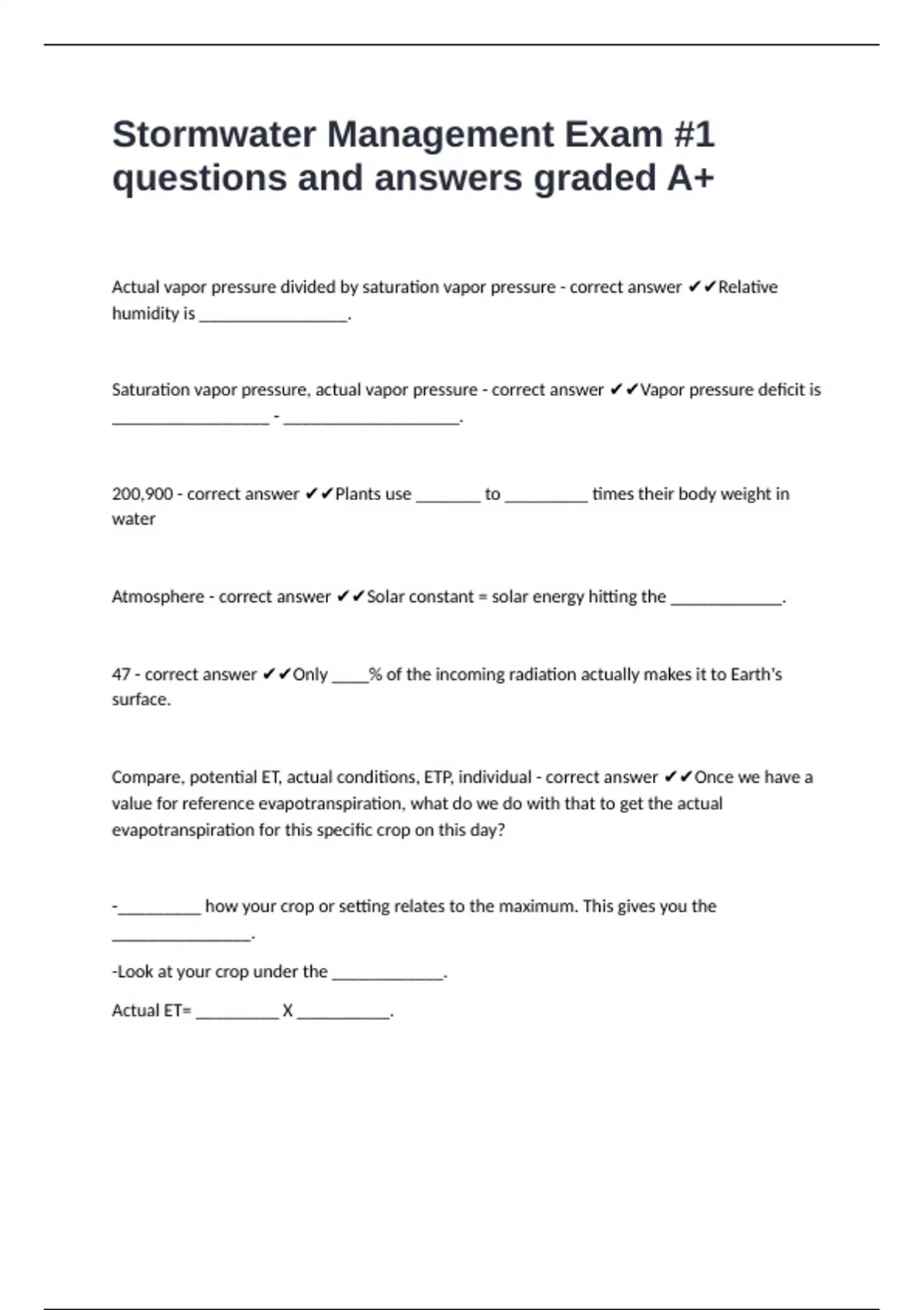 Compare, potential ET, actual conditions, ETP, individual - correct answer ✔✔Once we have a